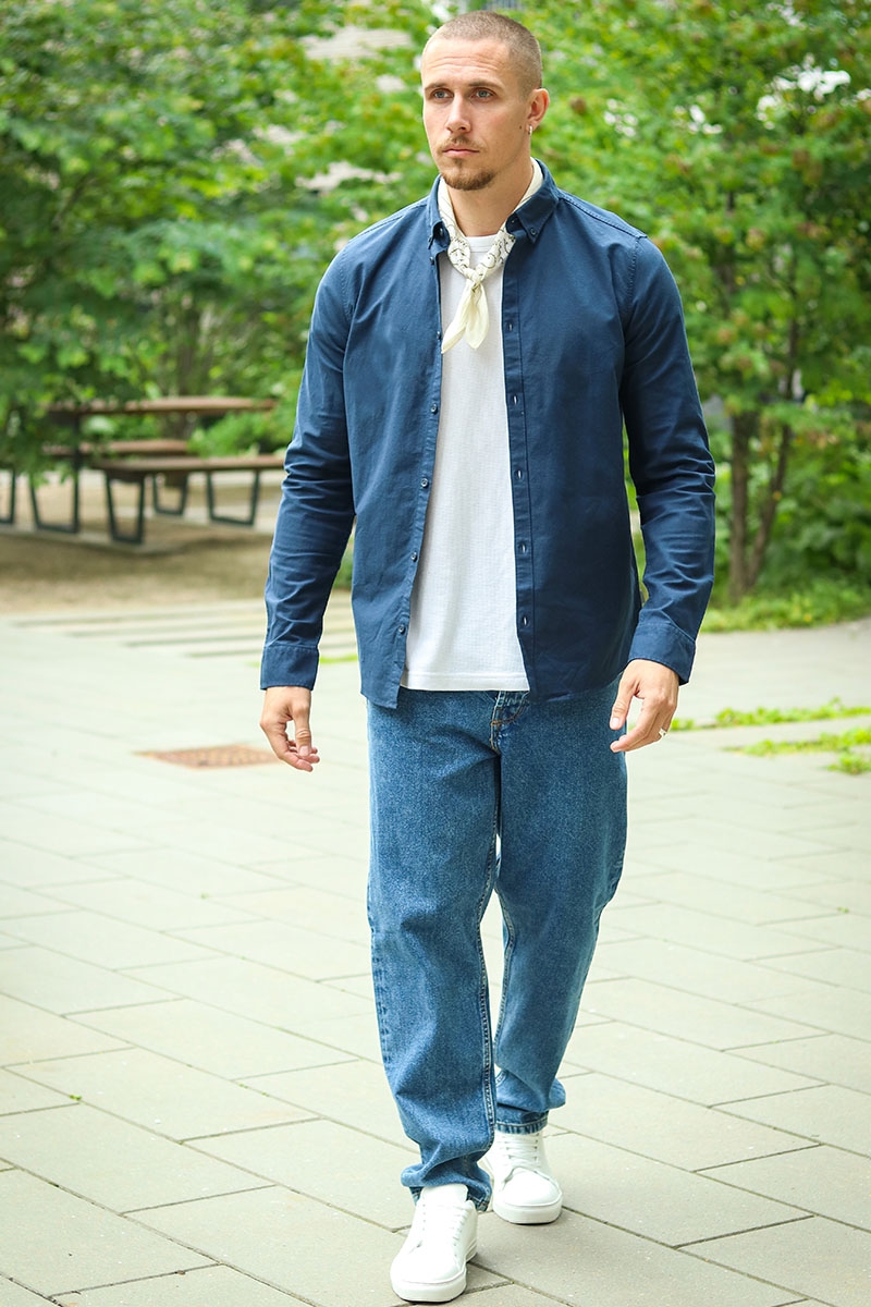 Solid Val Oxford Stretch Shirt LS Insignia Blue