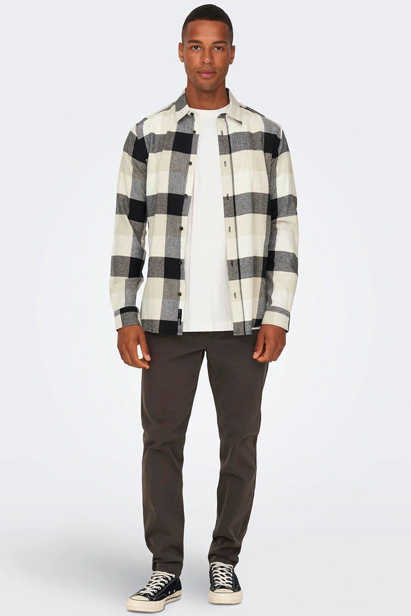 Only & Sons GUDMUND LS CHECK SHIRT Star White