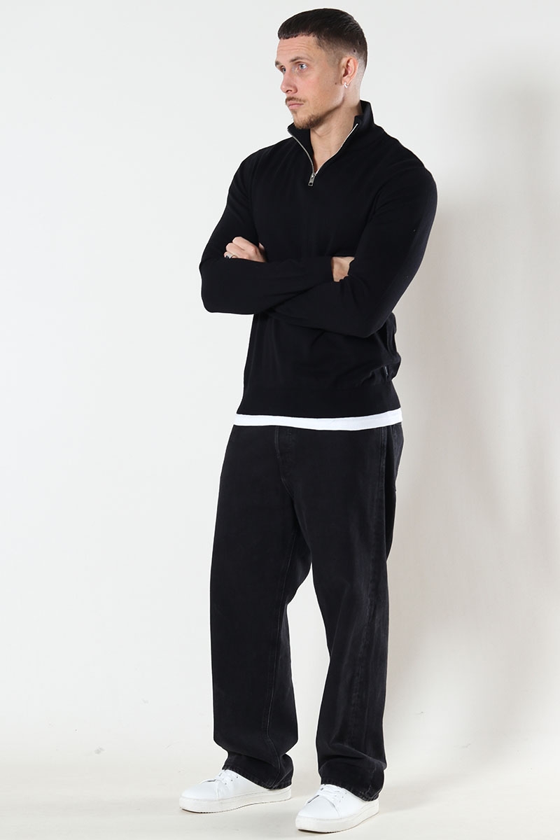 Jack & Jones Emil Strik Half Zip i farven Black.