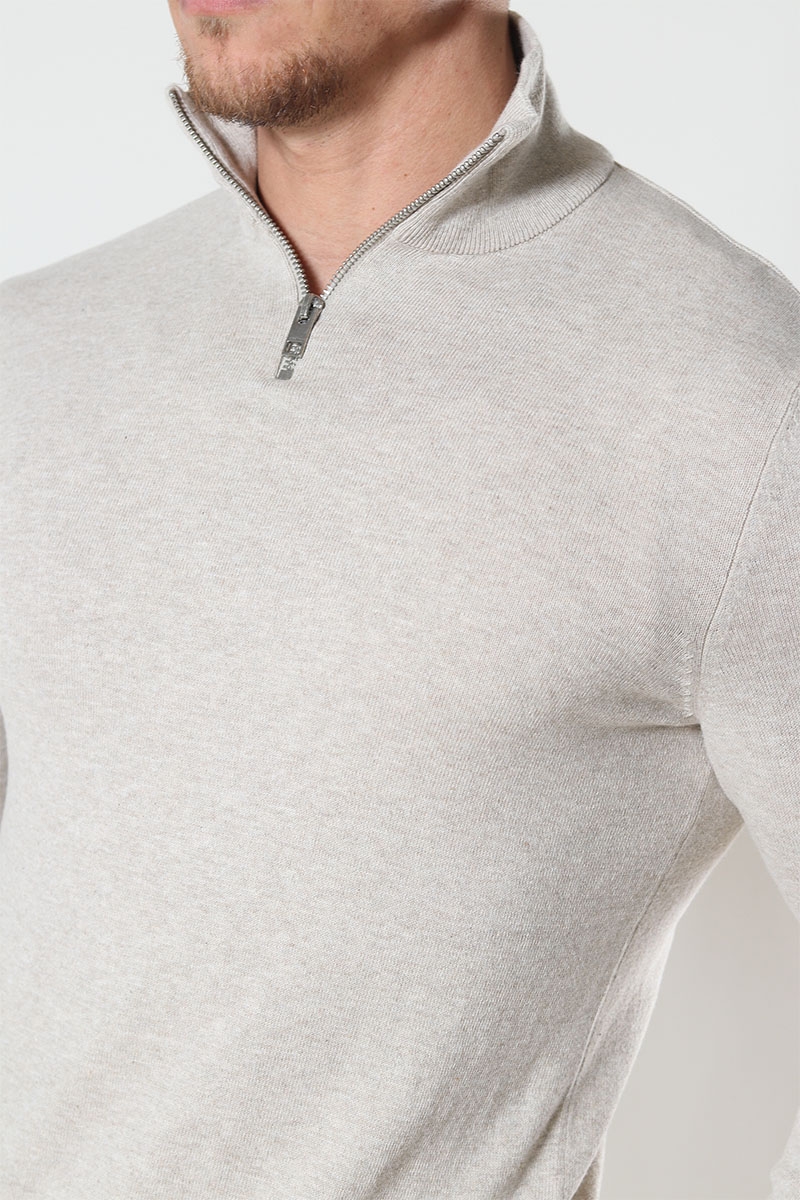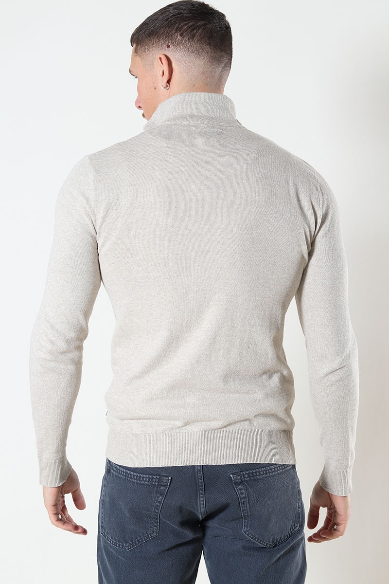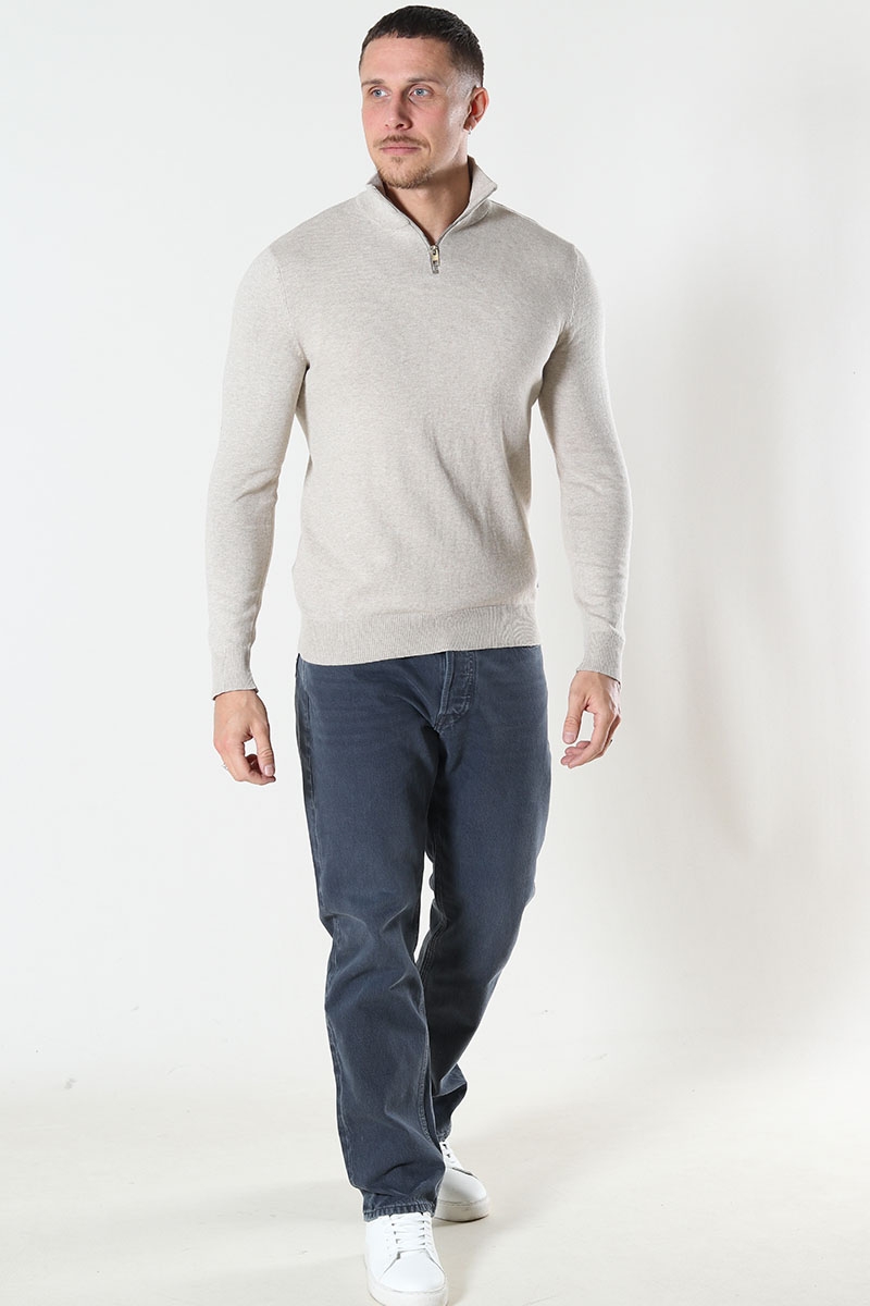 Jack & Jones Emil Strik Half Zip i farven Oatmeal.