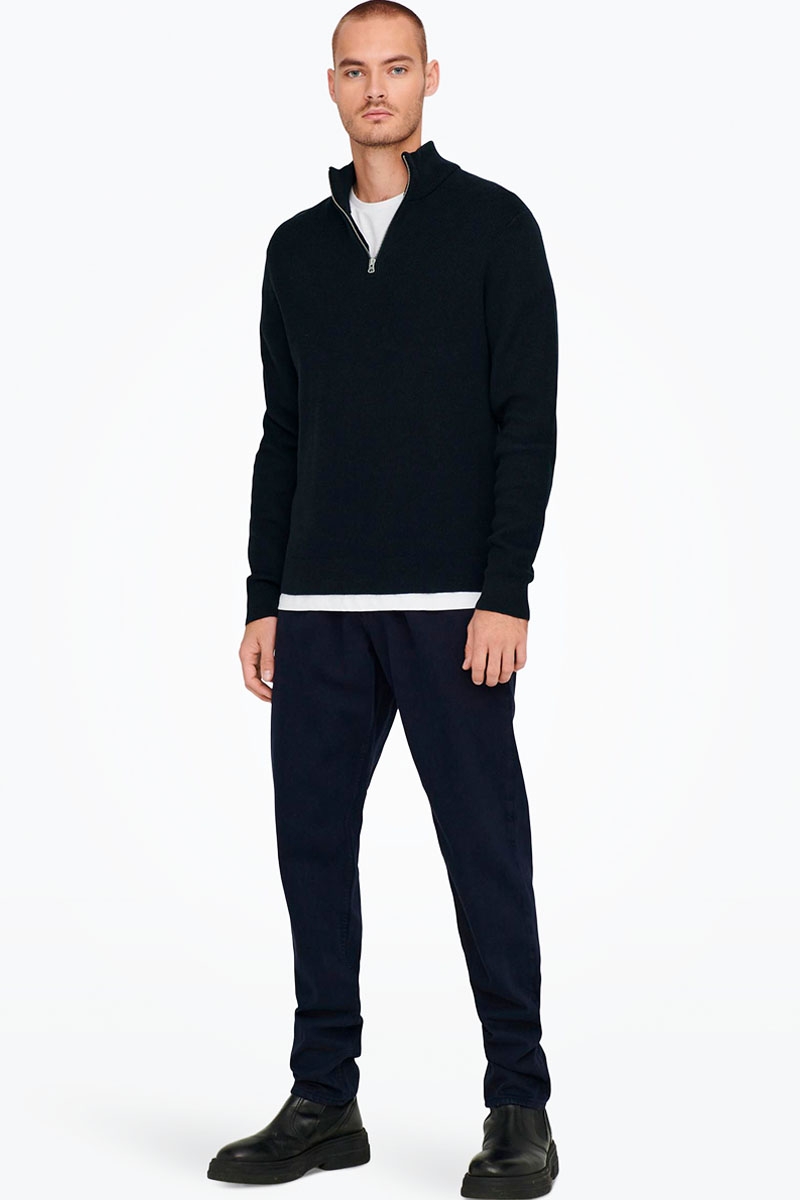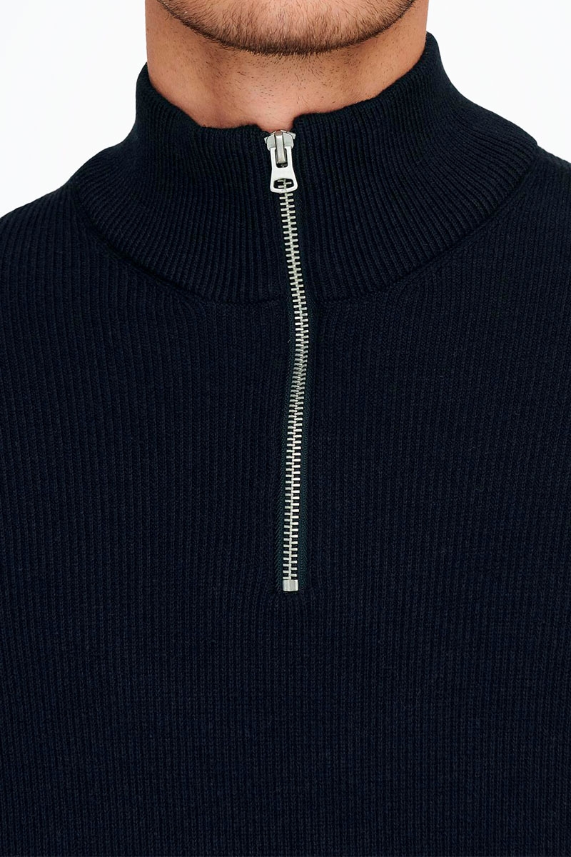 Only & Sons PHIL COTTON HALF ZIP KNIT Dark Navy