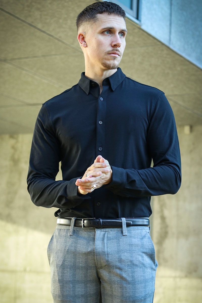 Modellen er 182 cm høj, vejer 80 kg, og bruger produktet i størrelse Large