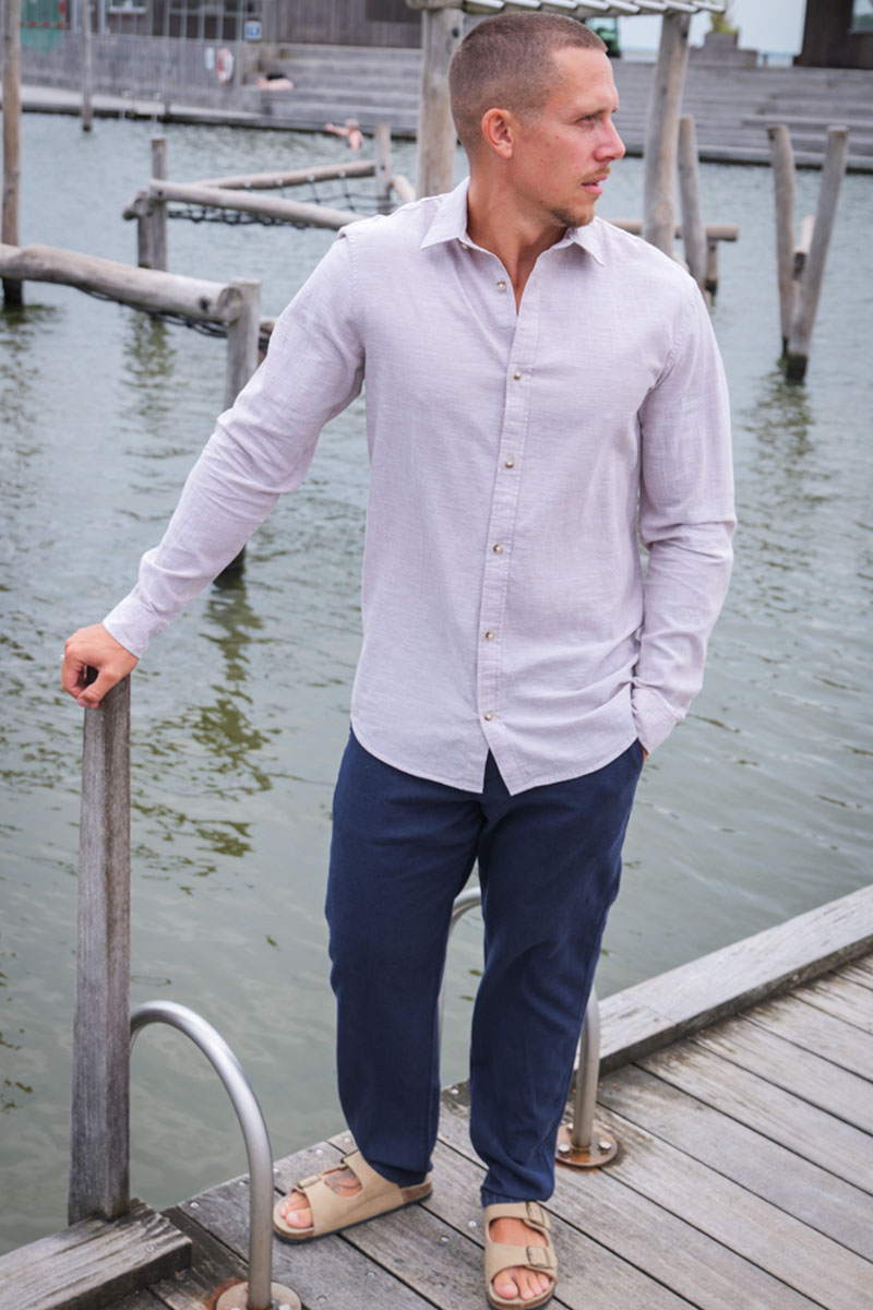 • Kvalitet: 54% Organisk bomuld. 45% Hør. 1% Elastan.