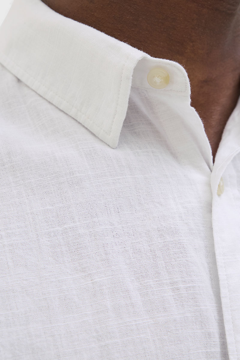 Skjorten er fremstillet af en blanding af 43% bomuld, 29% genbrugt bomuld og 28% hør. Dette sikrer en blød og komfortabel pasform.