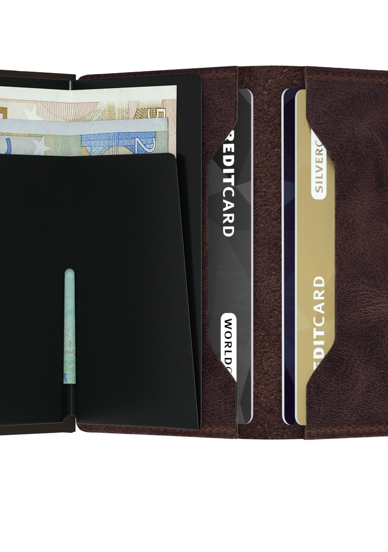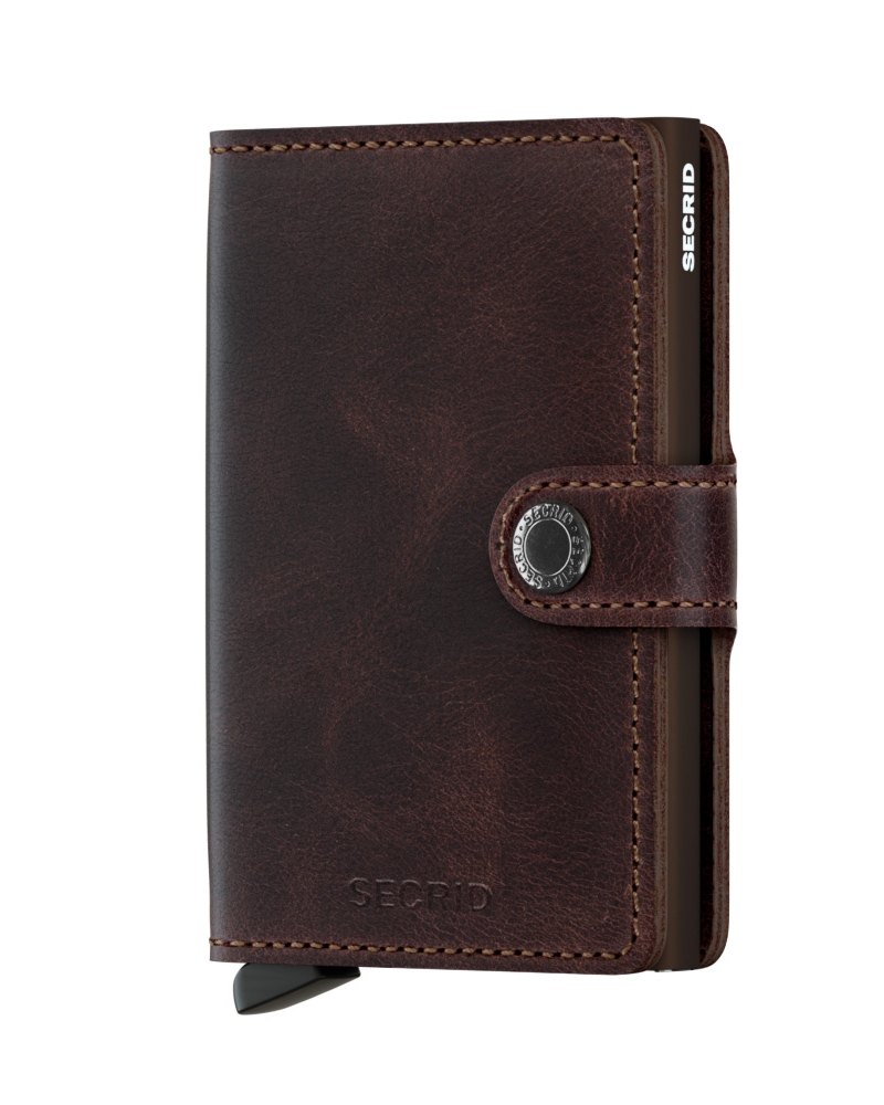 Secrid Miniwallet i farven Vintage Chocolate er en stilfuld og tidløs pung, der passer perfekt til en klassisk garderobe. Den mørkebrune farve og det slidte look giver pungen en autentisk vintage-stil.