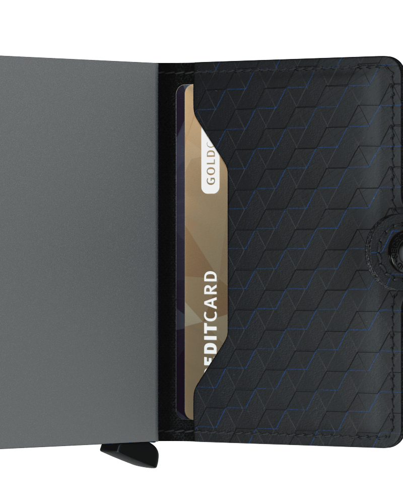 Secrid Miniwallet i farven Optical Black/Titanium er en stilfuld og praktisk pung, der er designet til at beskytte dine kort og samtidig holde dem organiseret. Pungen har et slankt og kompakt design, der gør den let at opbevare i lommen eller tasken.