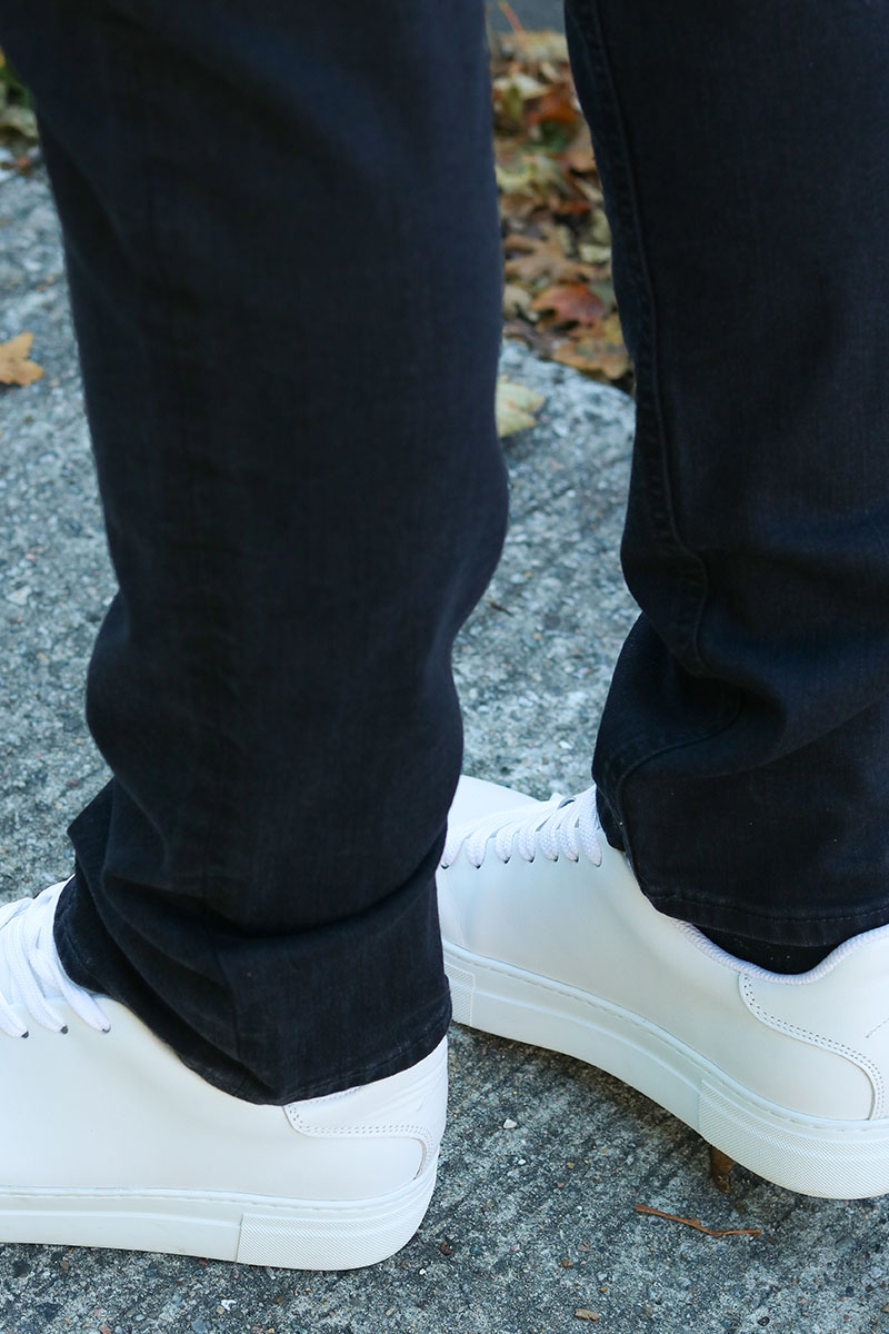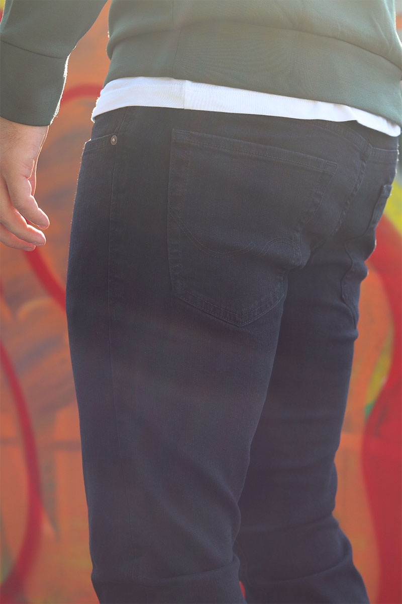 Modellen er 182 cm høj, vejer 80 kg, og bruger produktet i størrelse 32/34