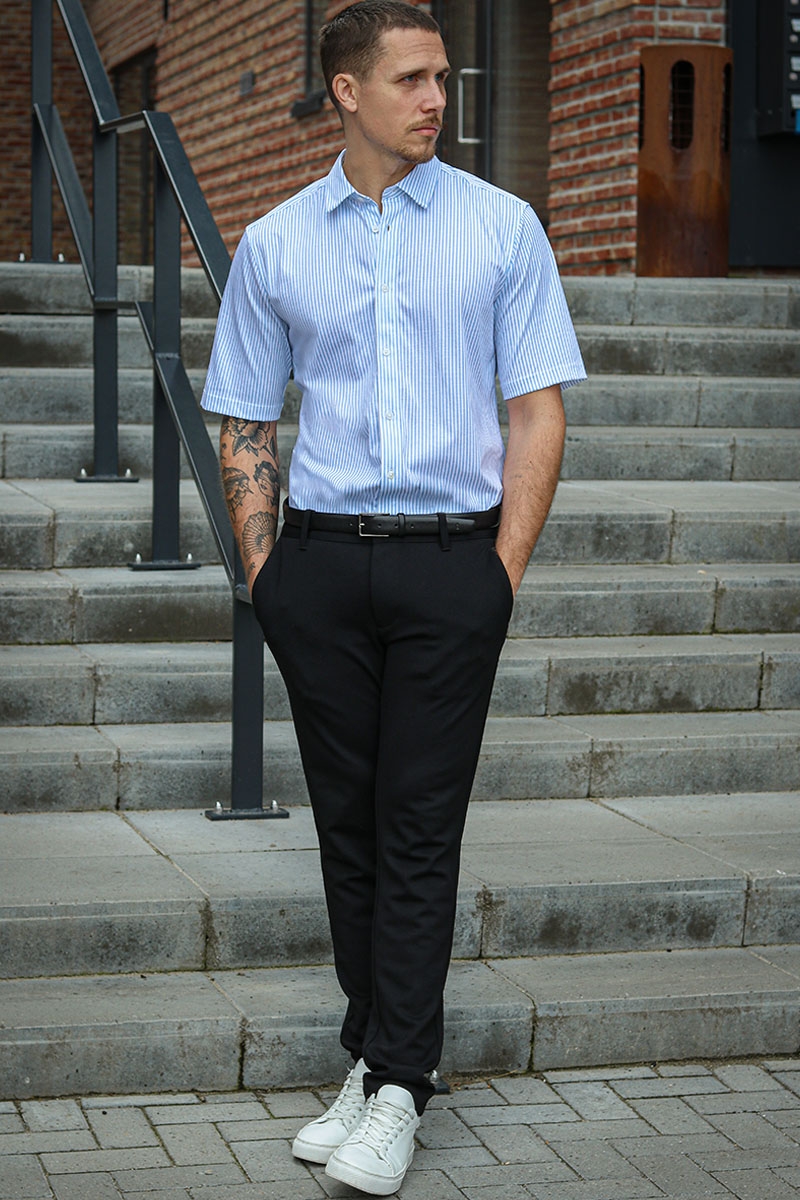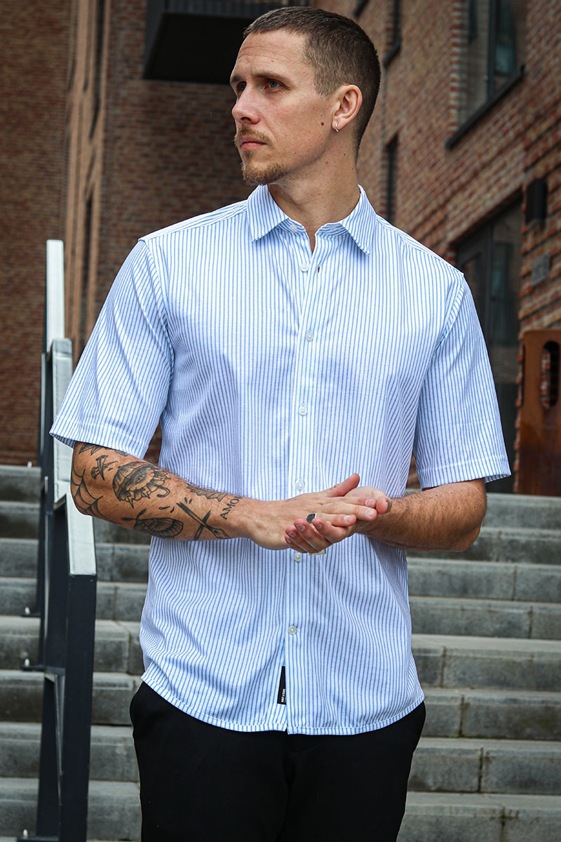 Comfort Shirt i farven Cashmere Blue Stripe er en sofistikeret og stilfuld tilføjelse til enhver garderobe. Det klassiske design har korte ærmer og en strækbar, behagelig pasform, hvilket gør den perfekt til sommerbrug. Skjorten har også en traditionel krave, der tilføjer et touch af klasse til ethvert outfit.