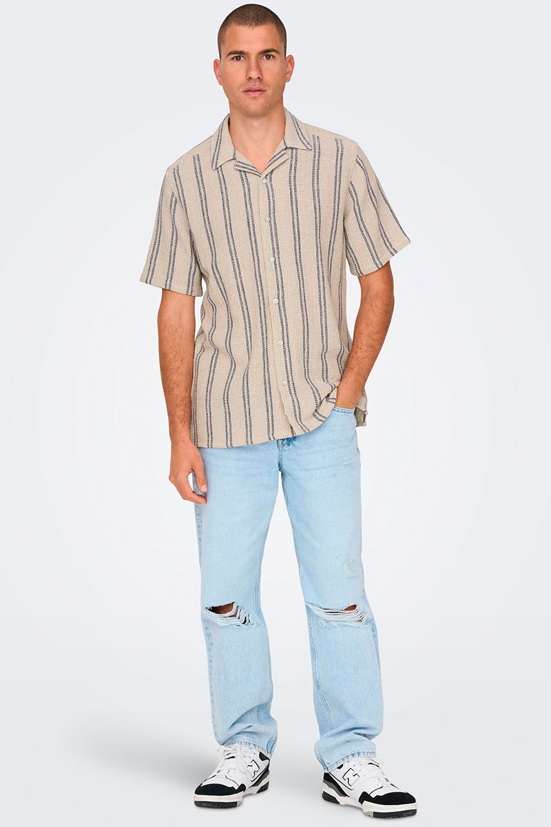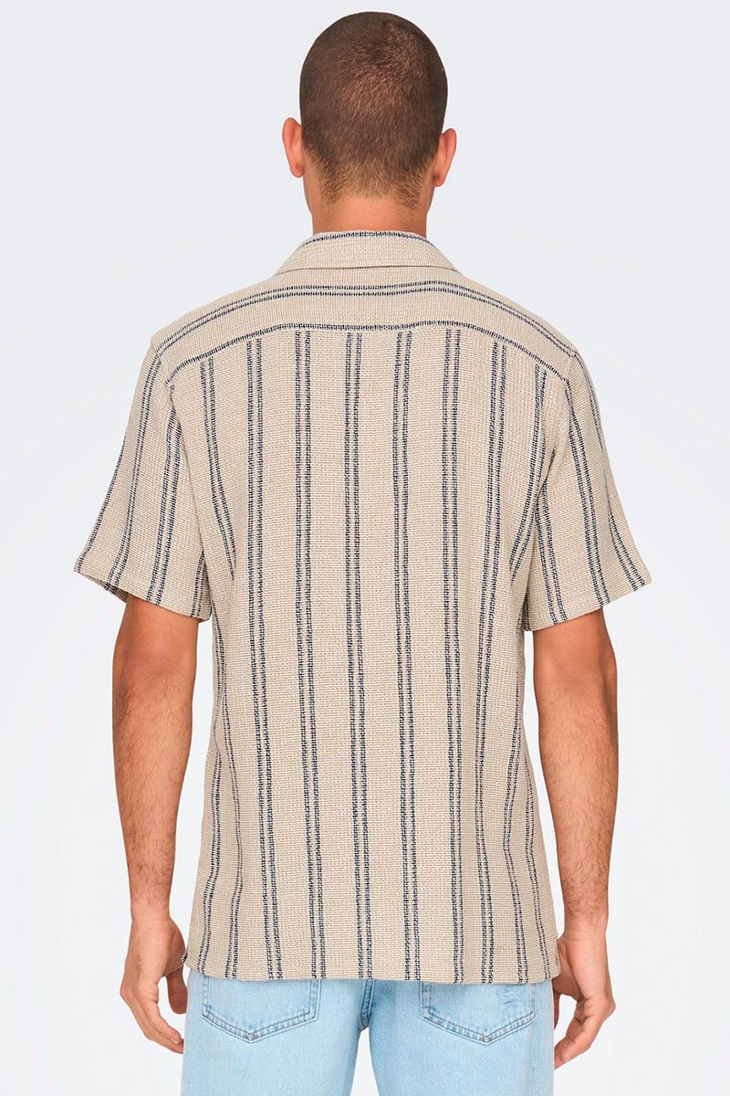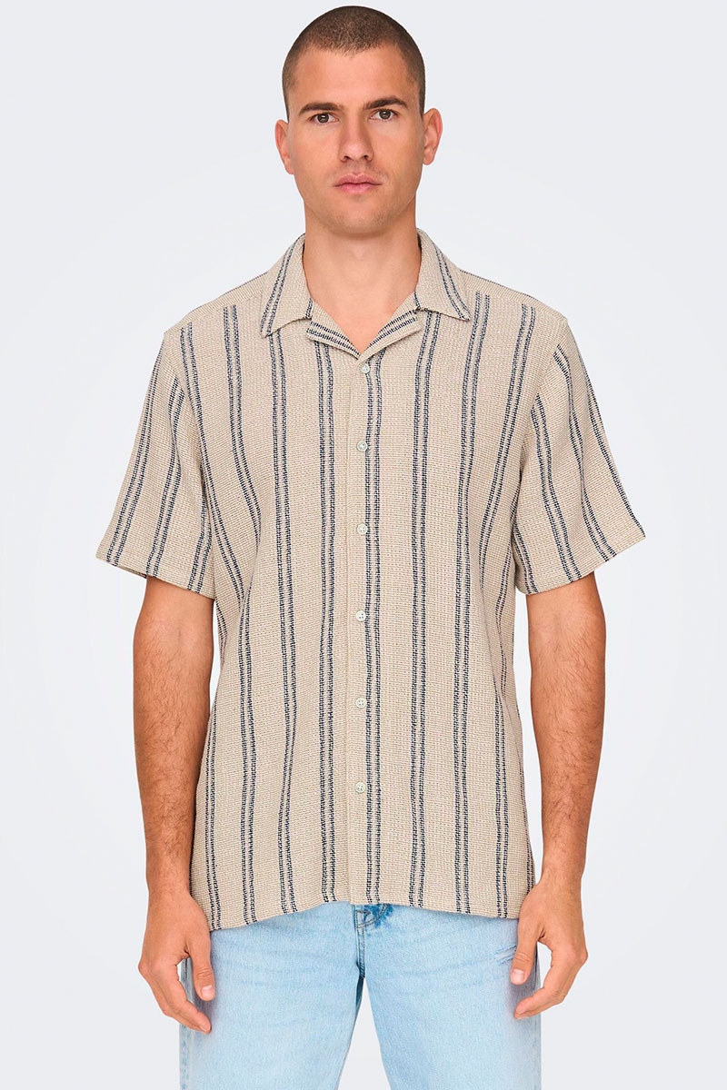 Only & Sons Trev Reg Structure Stripe SS Shirt Vintage Khaki