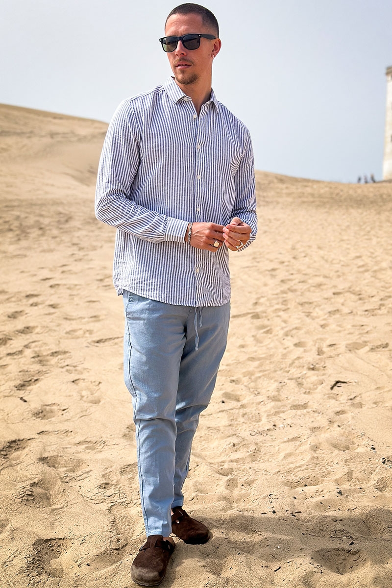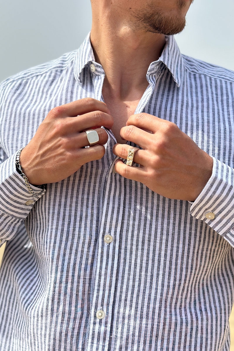 Only & Sons Caiden LS Stripe Linen Shirt Dark Navy