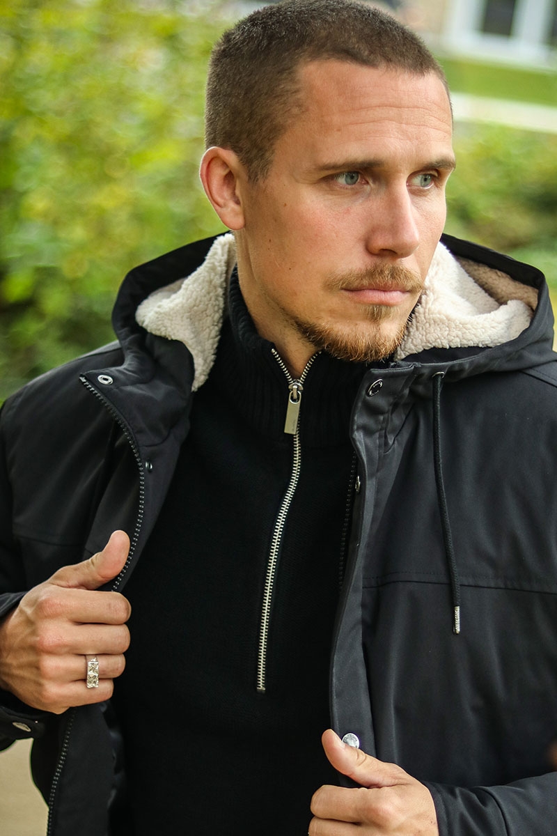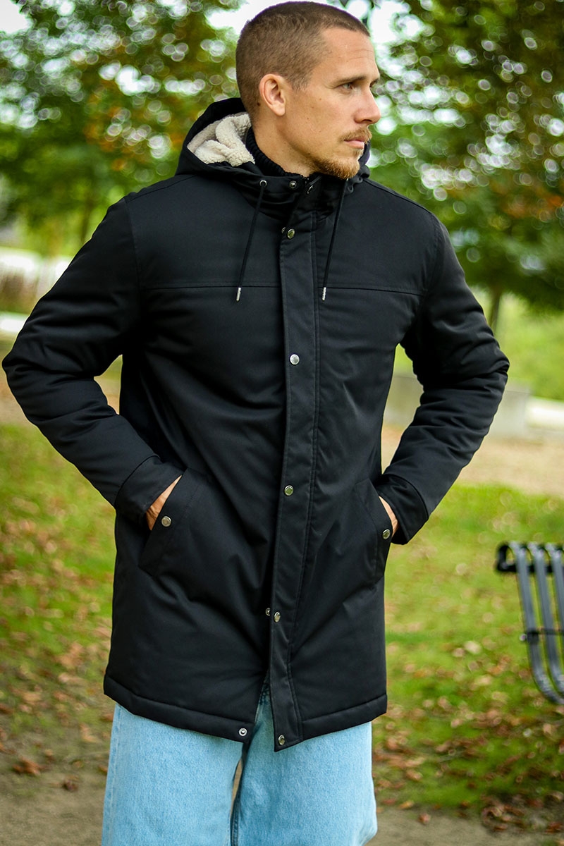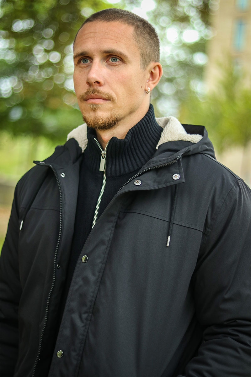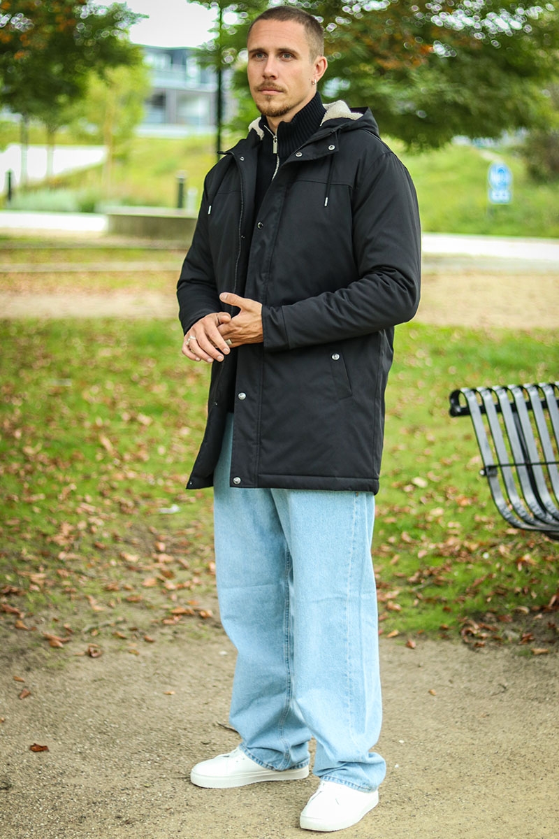 Modellen er 182 cm høj, vejer 80 kg, og bruger produktet i størrelse Large