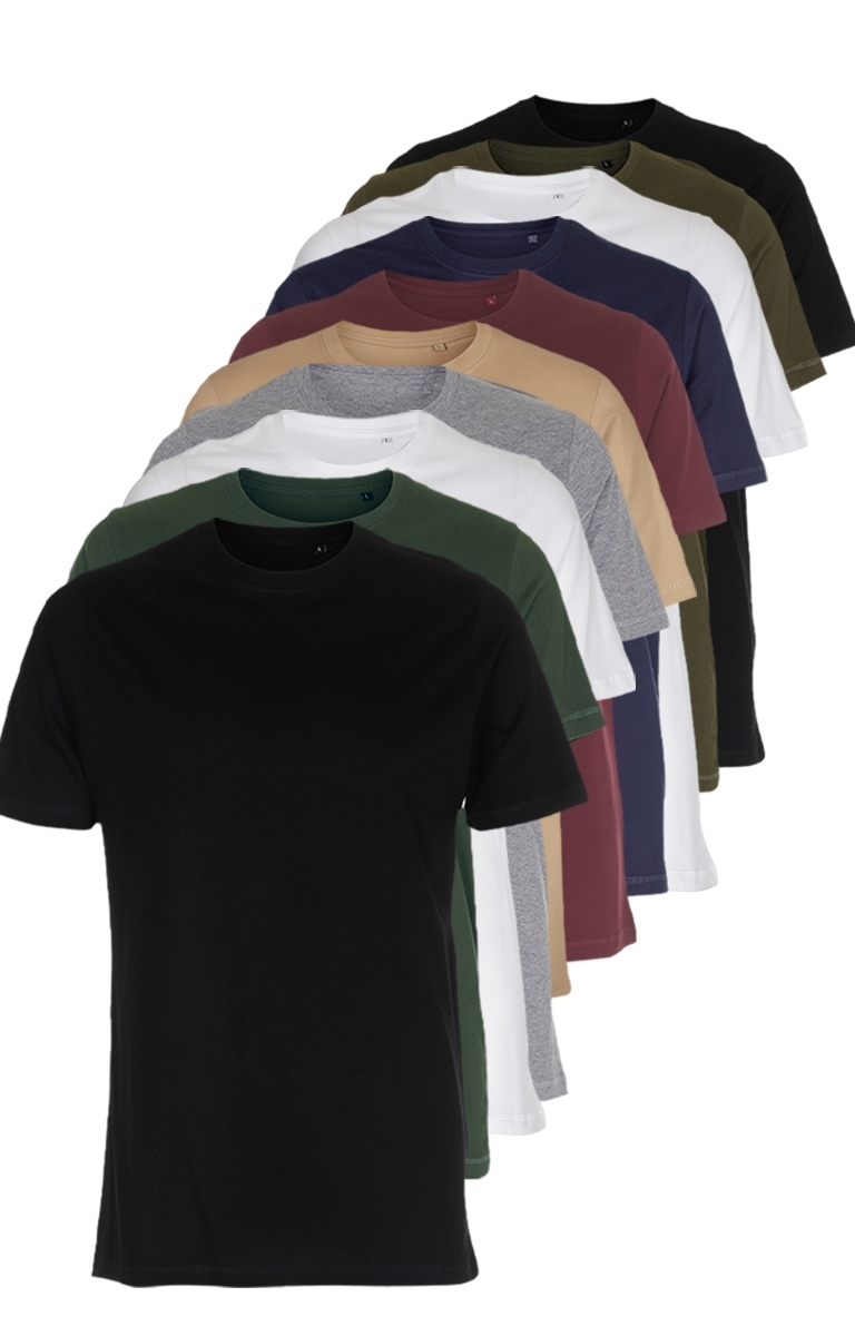 T-shirten er lavet i 100 % kæmmet og enzymvasket bomuld, hvilket gør den blød, slidstærk og behagelig at have på. Stoffet er single jersey med en glat og ensartet overflade, som holder sig flot vask efter vask.