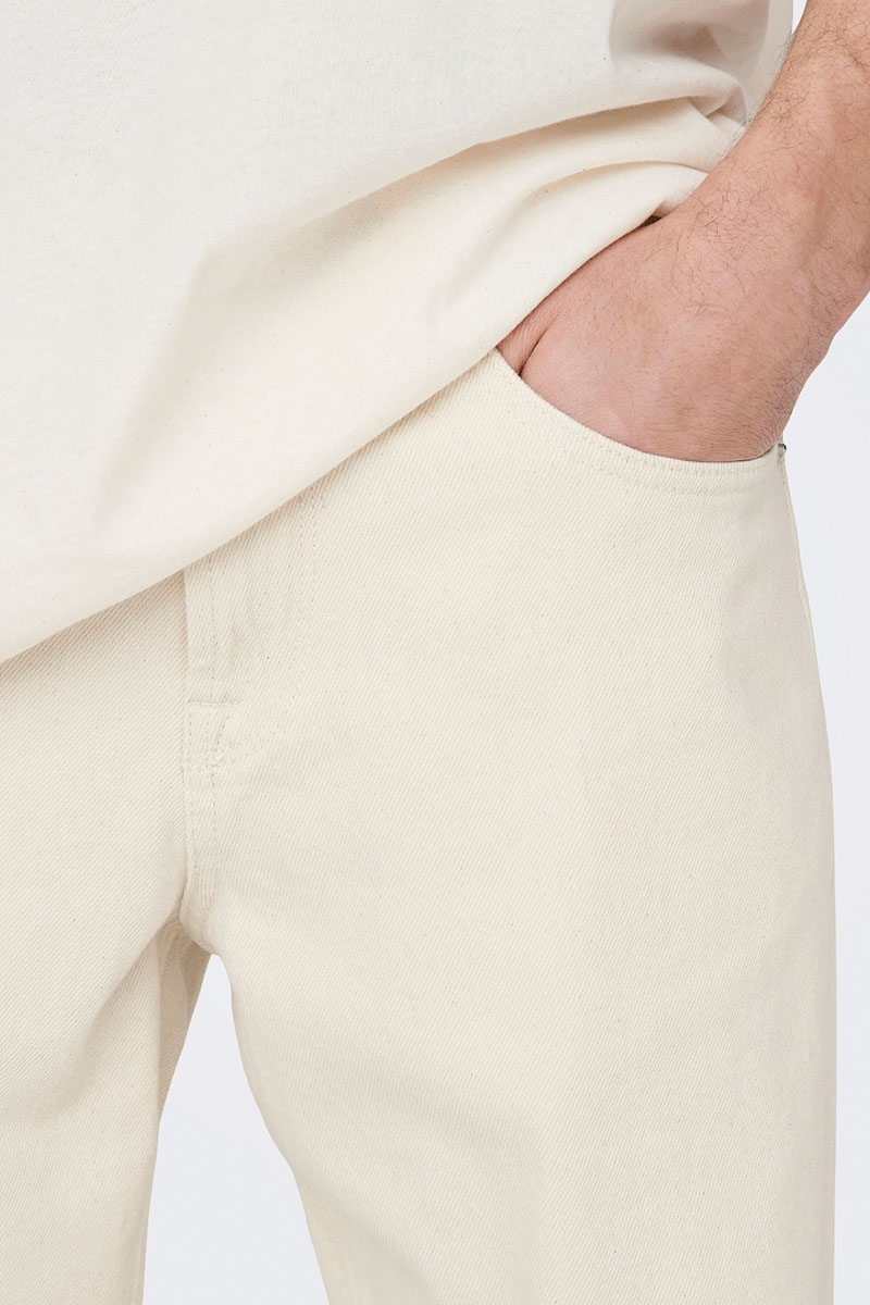 Modellen er 182 cm høj, vejer 80 kg, og bruger produktet i størrelse 32/34