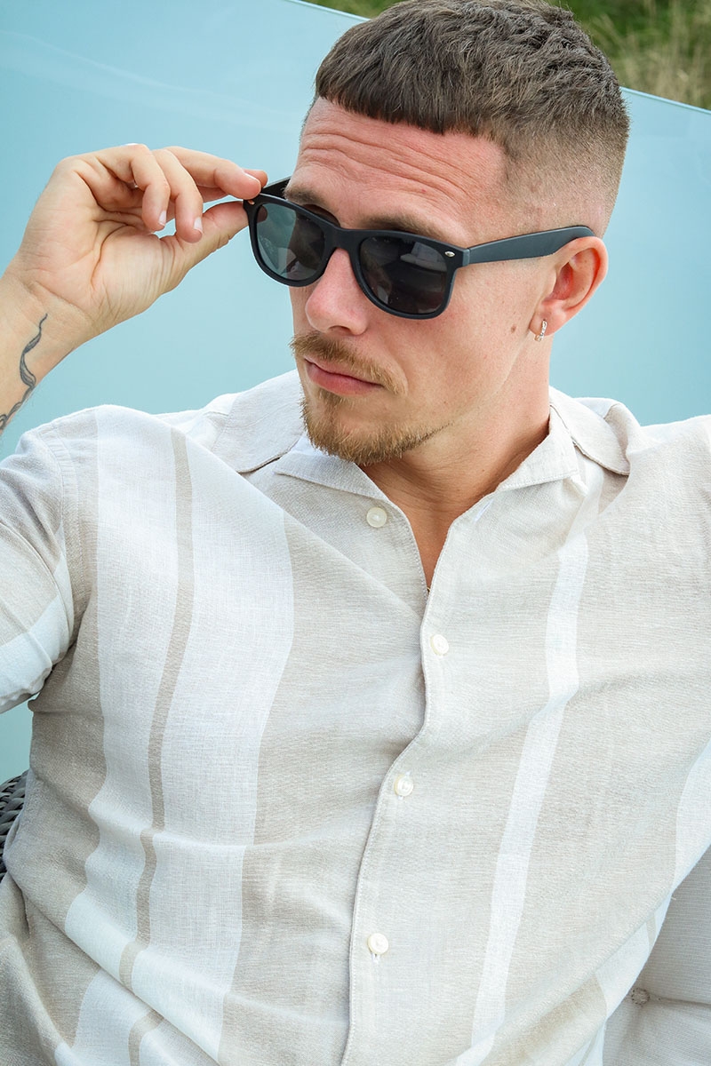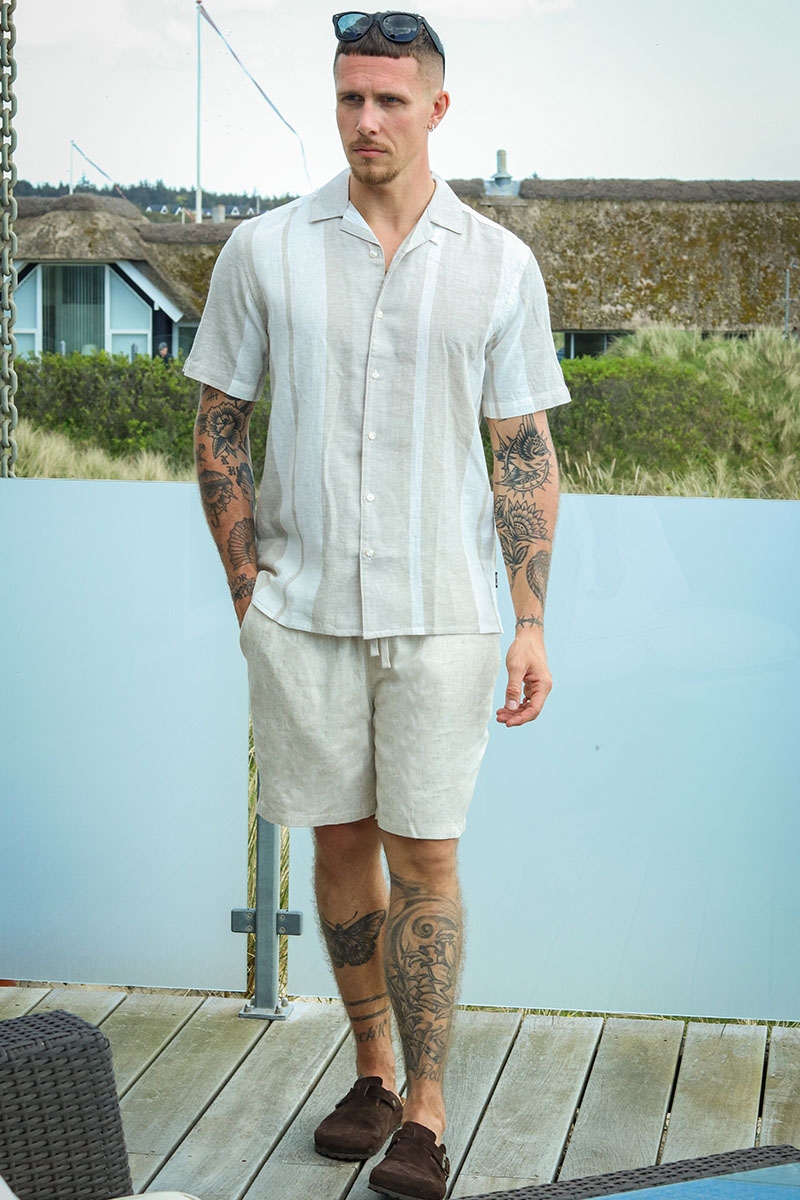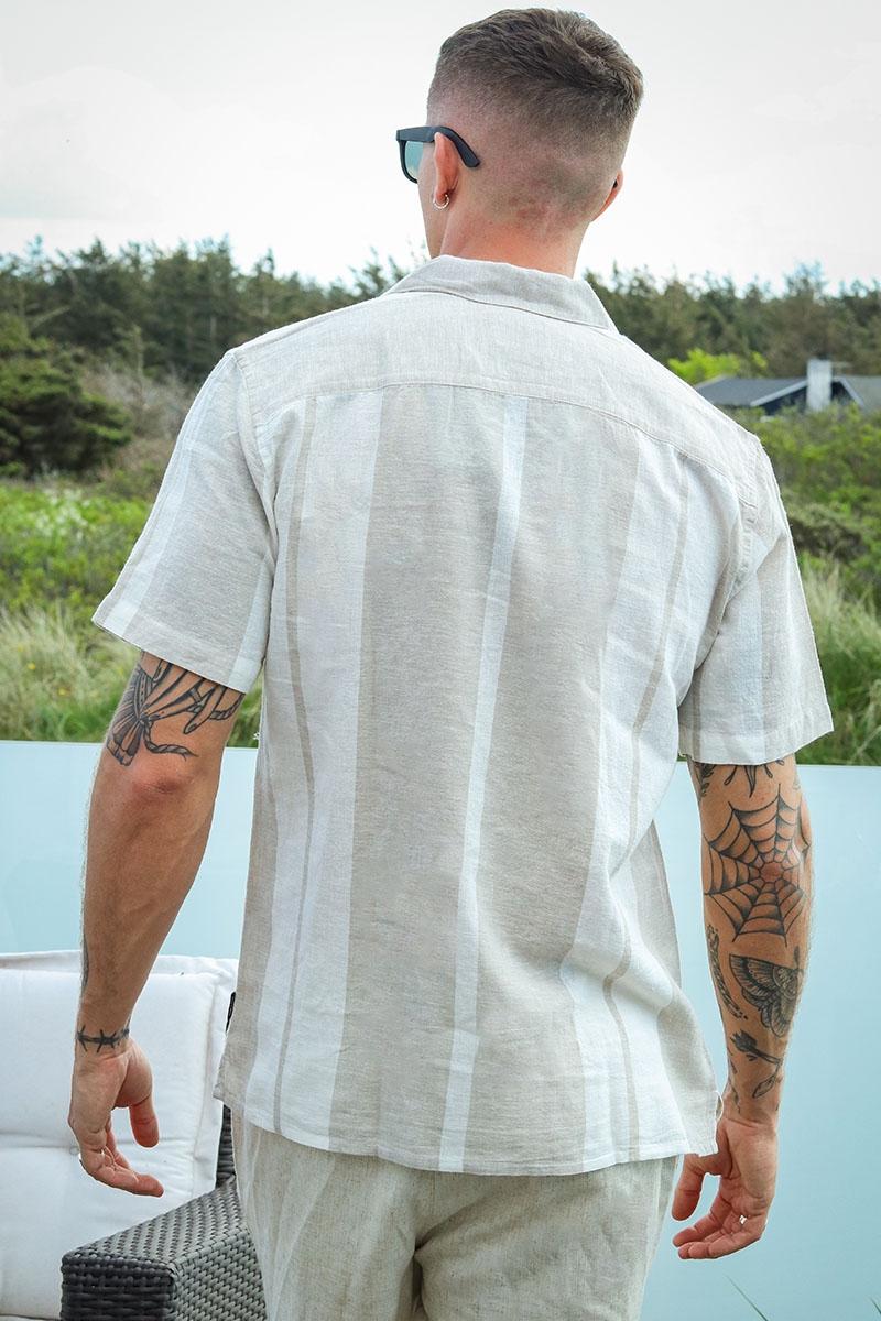 • Kortærmet hør skjorte med striber.