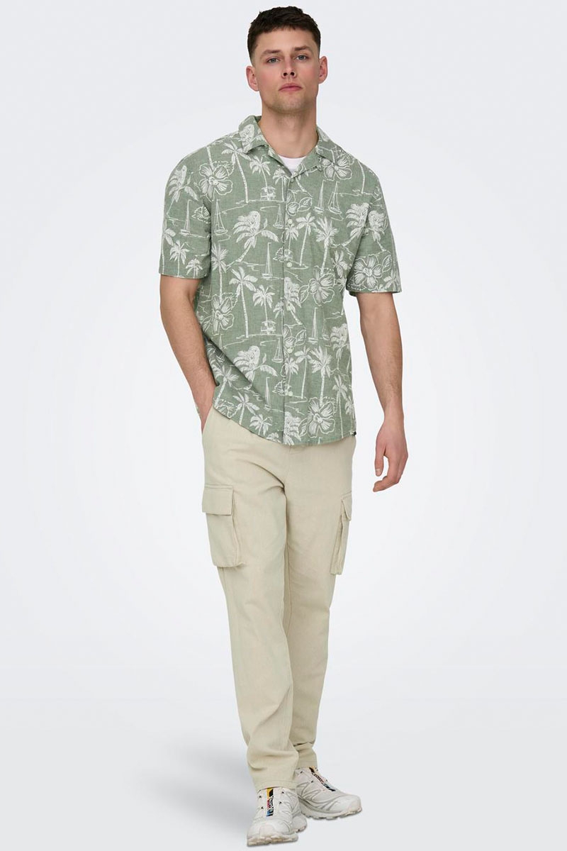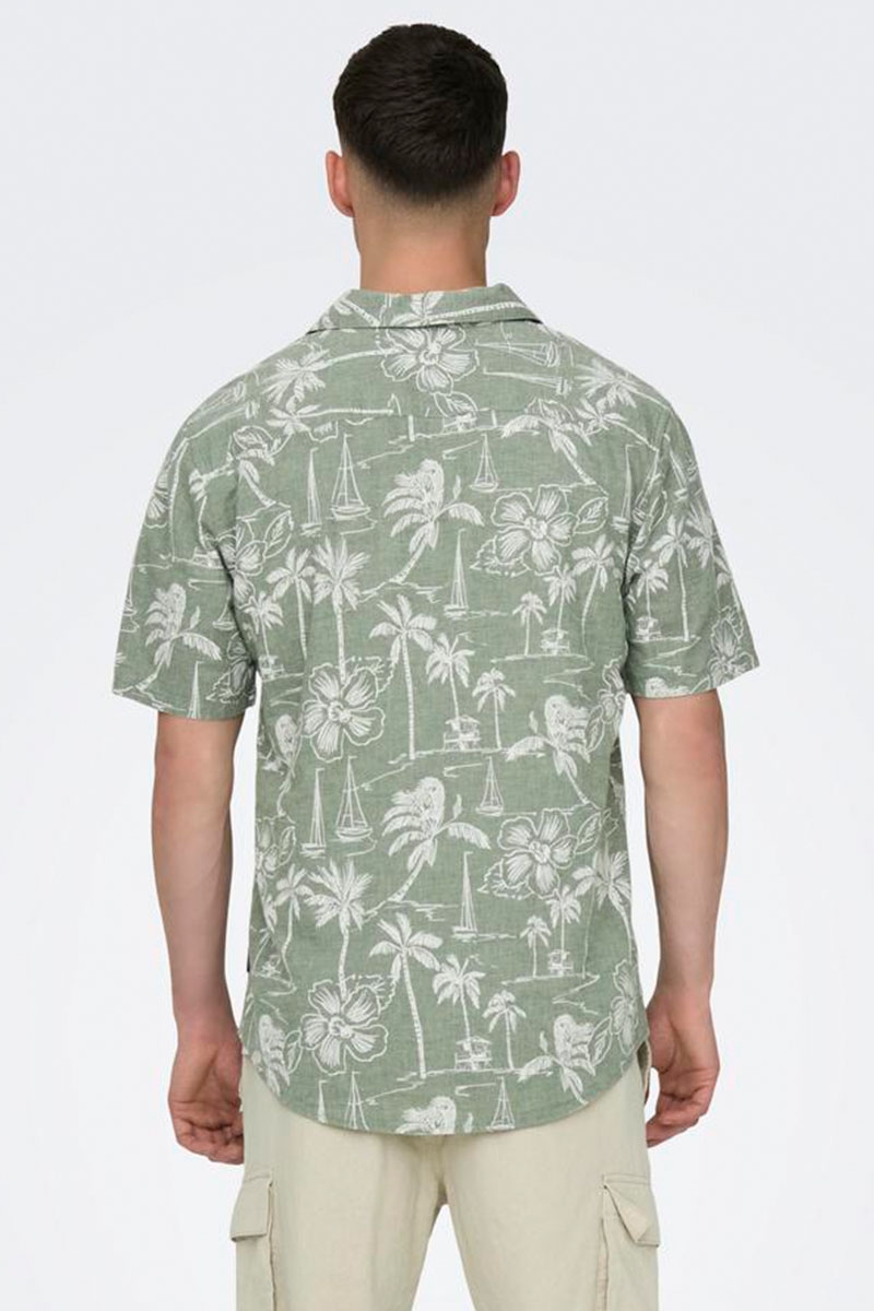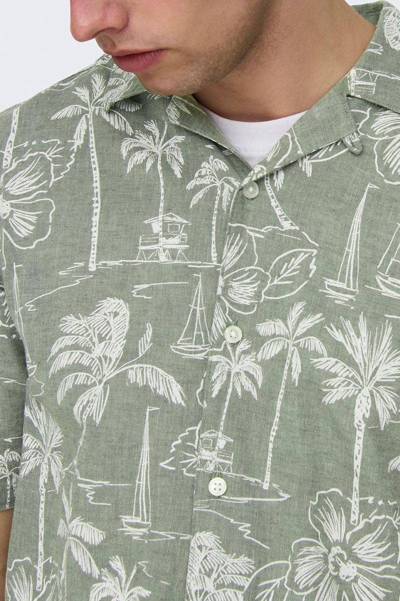 Only & Sons Caiden SS Regular Hawaii Linen Shirt Swamp