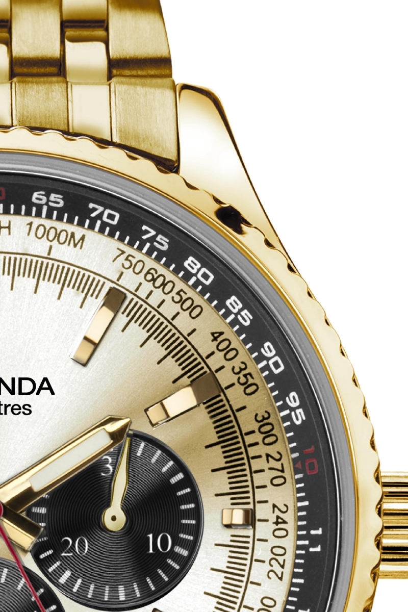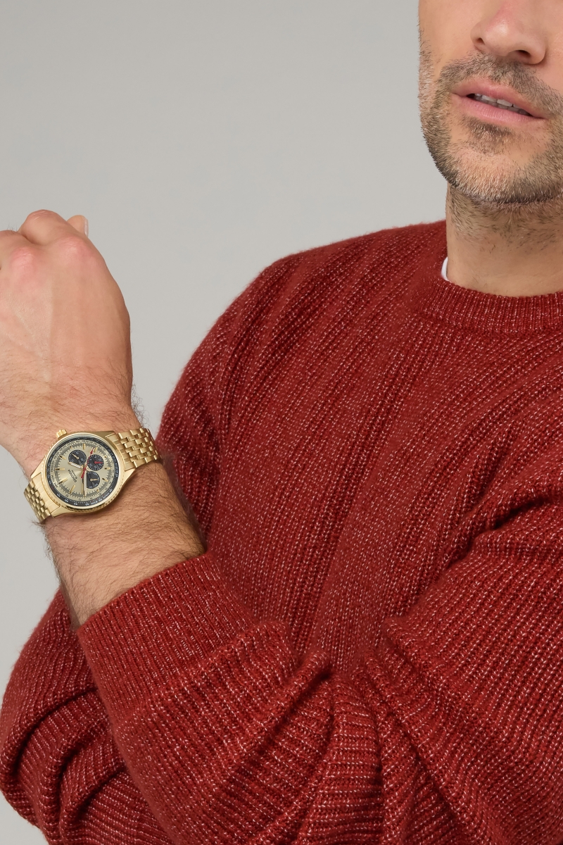 • Kommer med rem i rustfri stål og guldfarvet urskive.