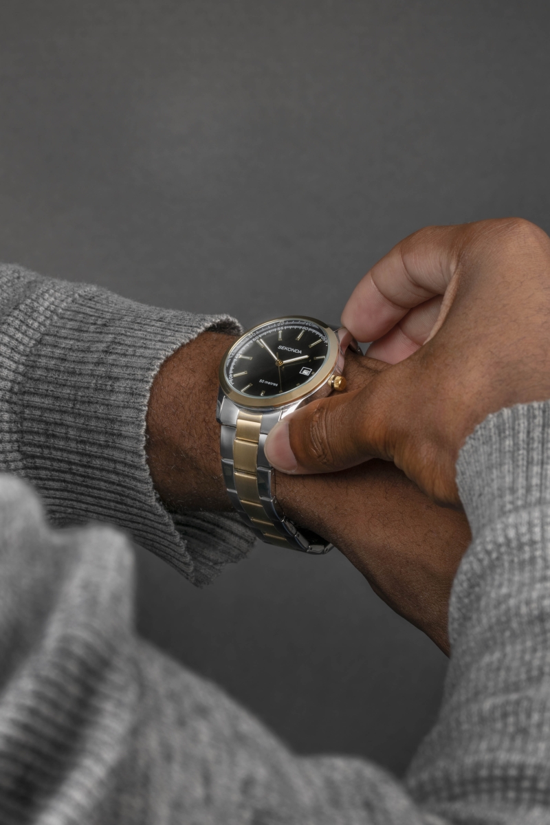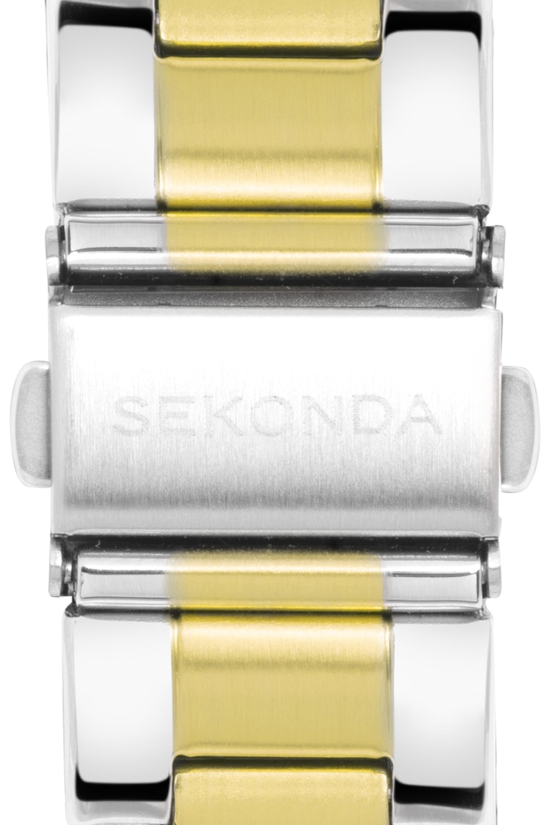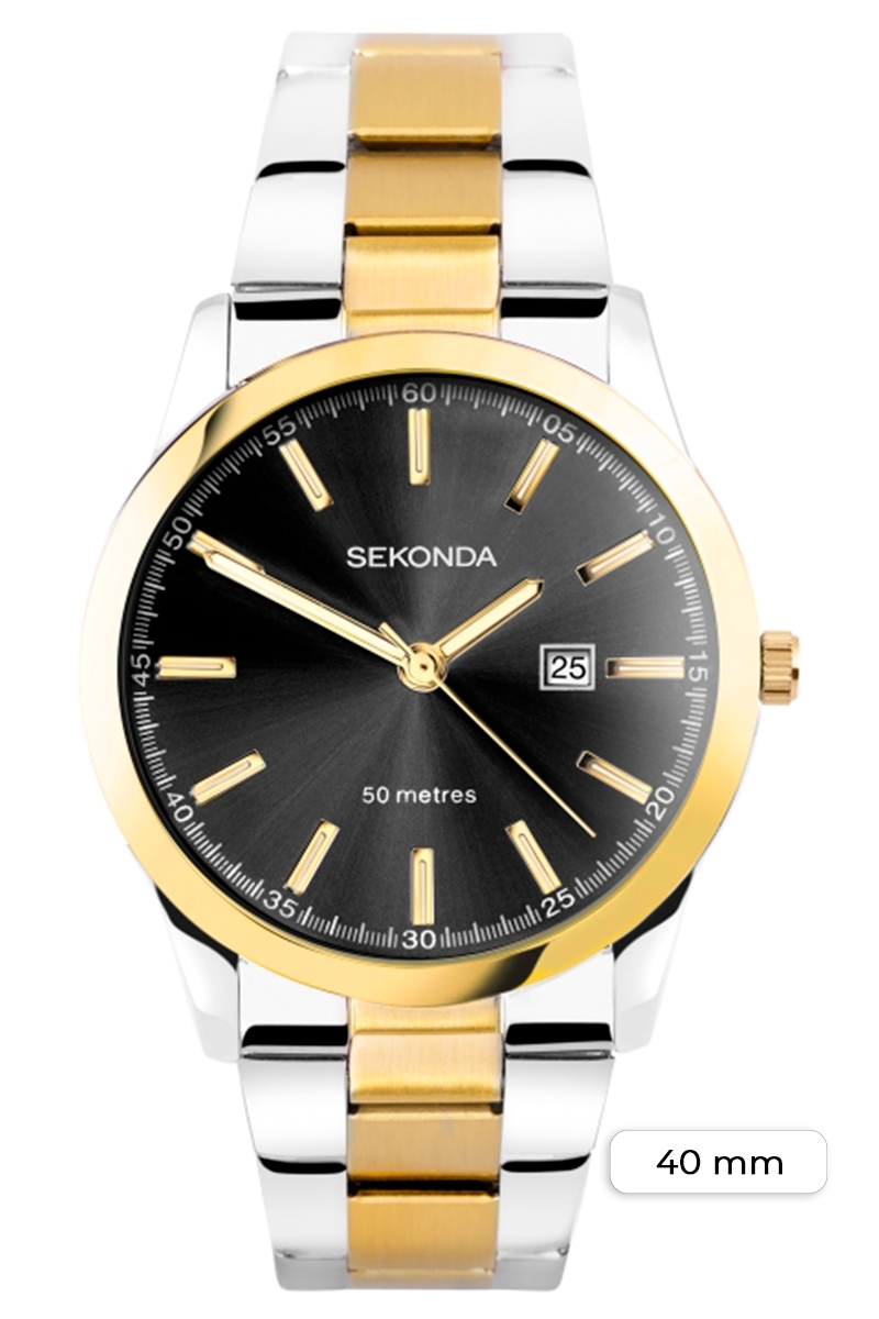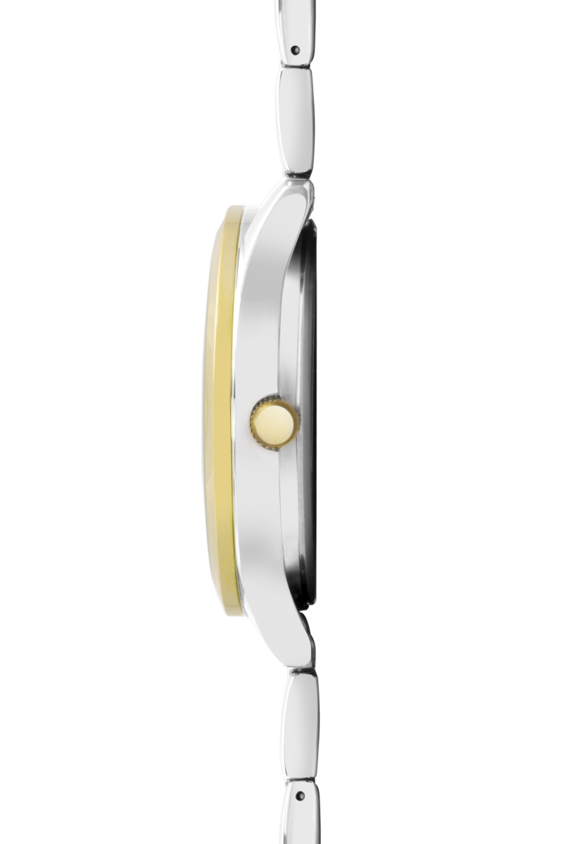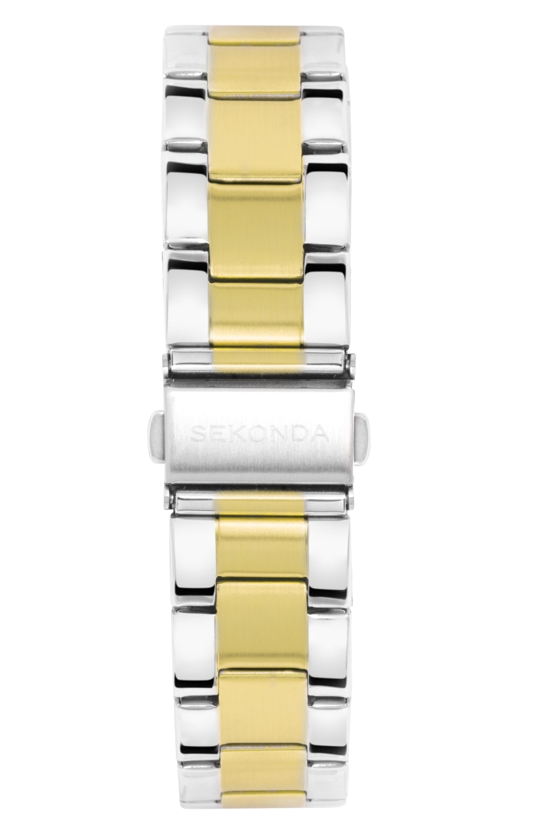 - Kommer med guld- og sølvfarvede rem og sort urskive.