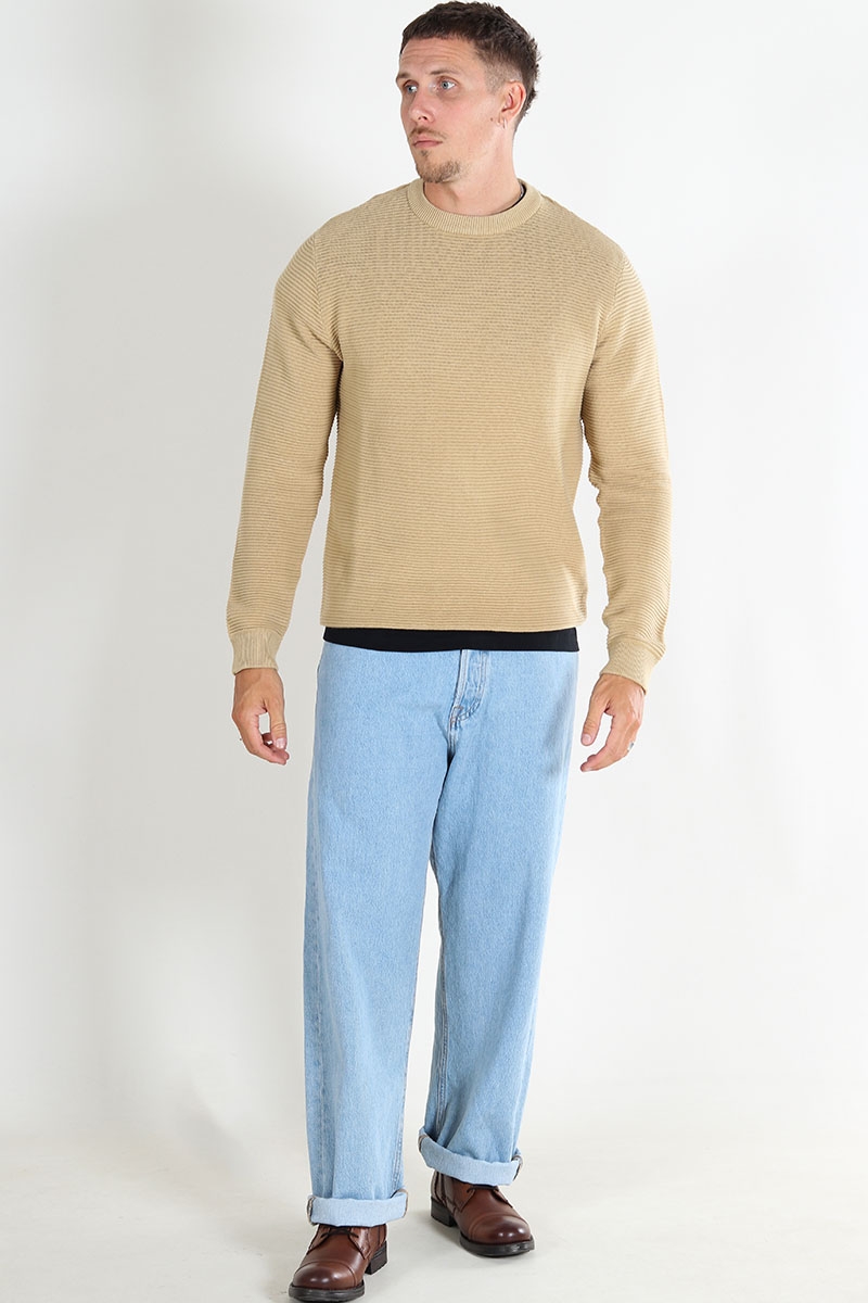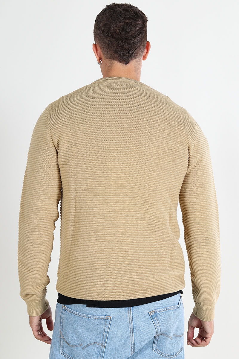 • Striktrøjen har ribkant i bunden, ærmerne, og i halsen.
