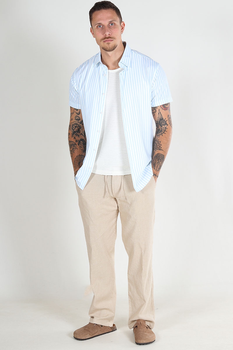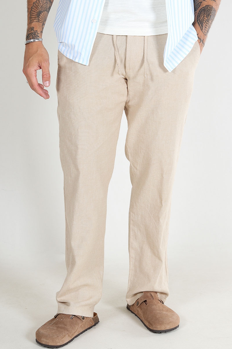 - Kvalitet: 54% Bomuld, 45% Hør, 1% Elastan.