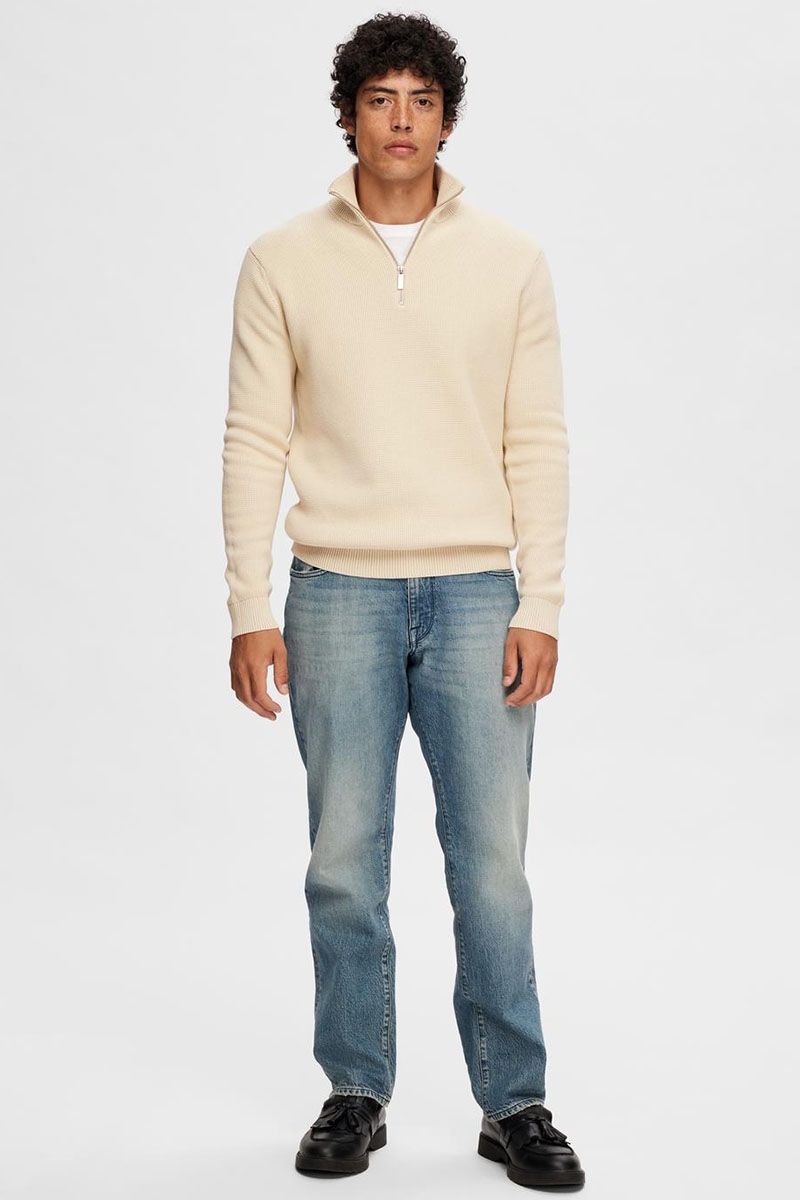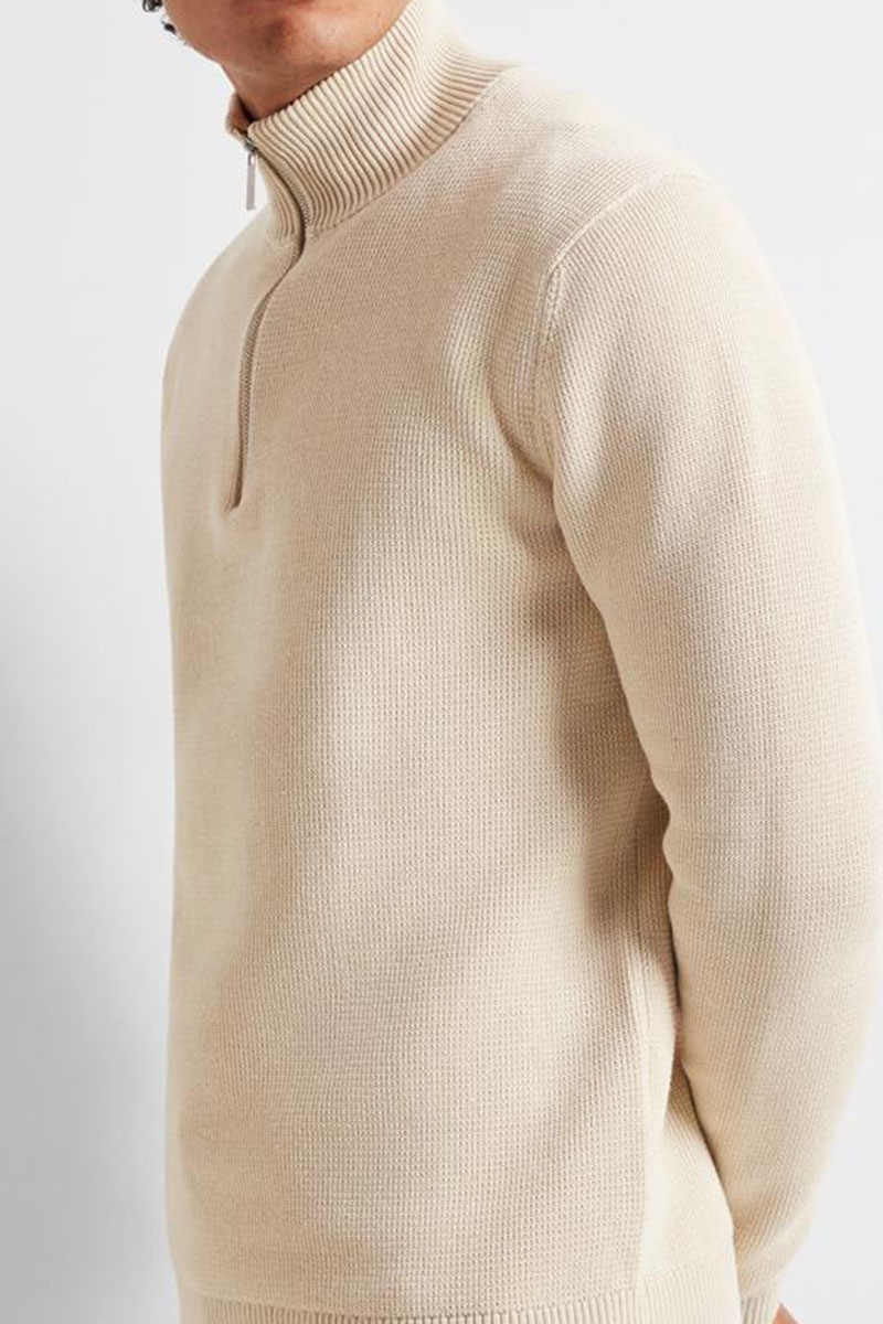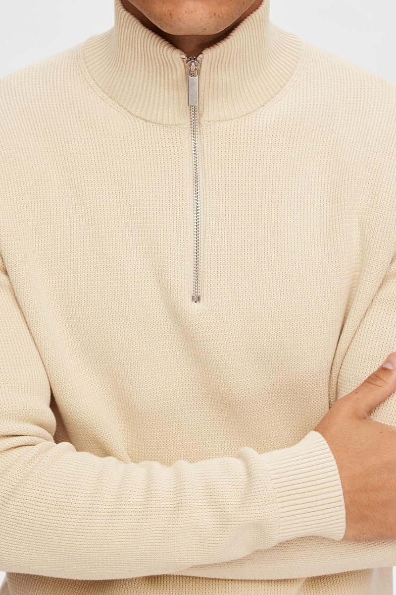 Selected Dane LS Structure Knit Half Zip Oatmeal