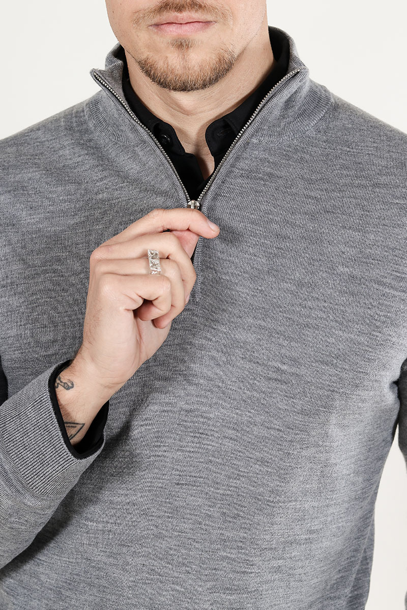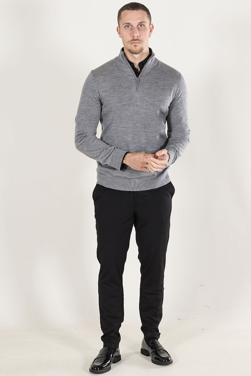 Selected Tray LS Merino Knit Half Zip Medium Grey Melange