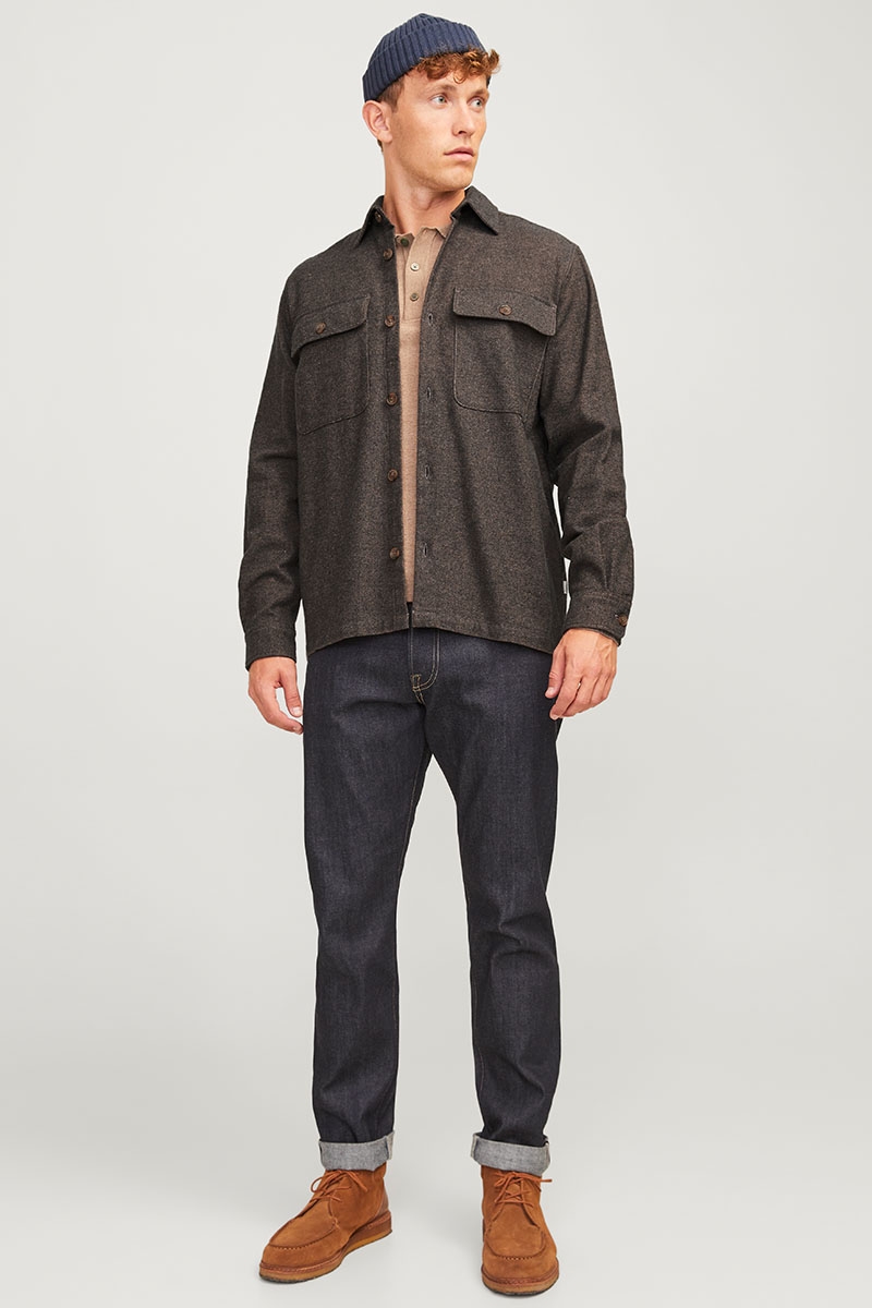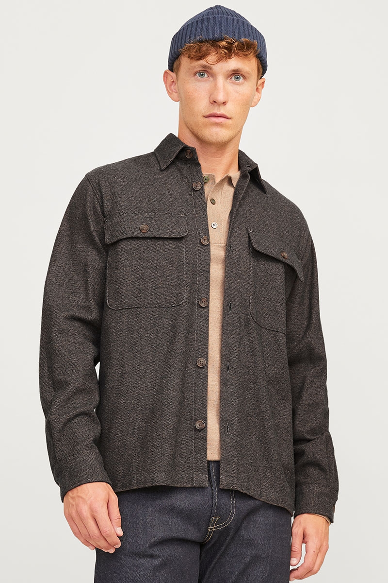 Jack & Jones Raymond Melange Solid LS Overshirt Slate Black
