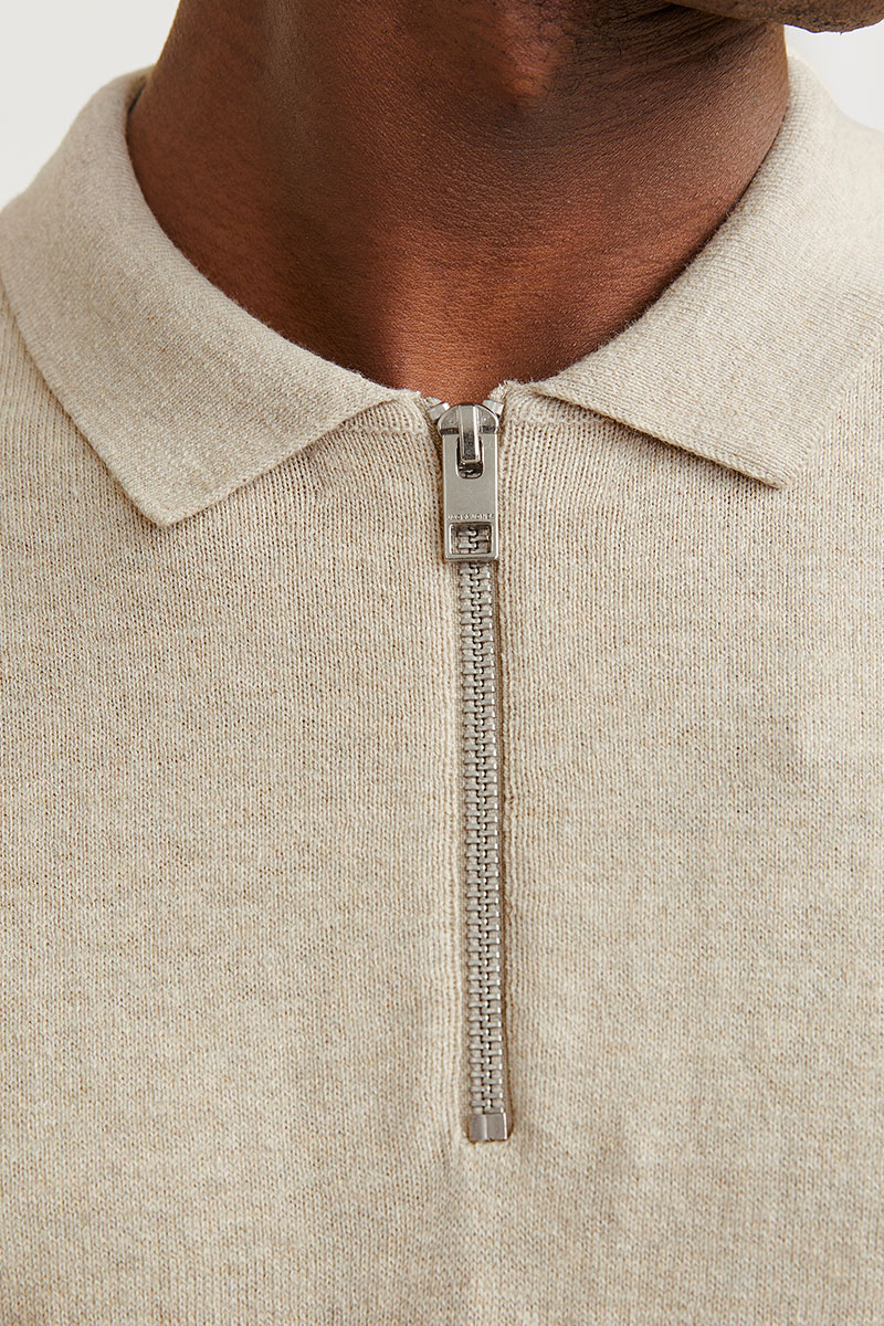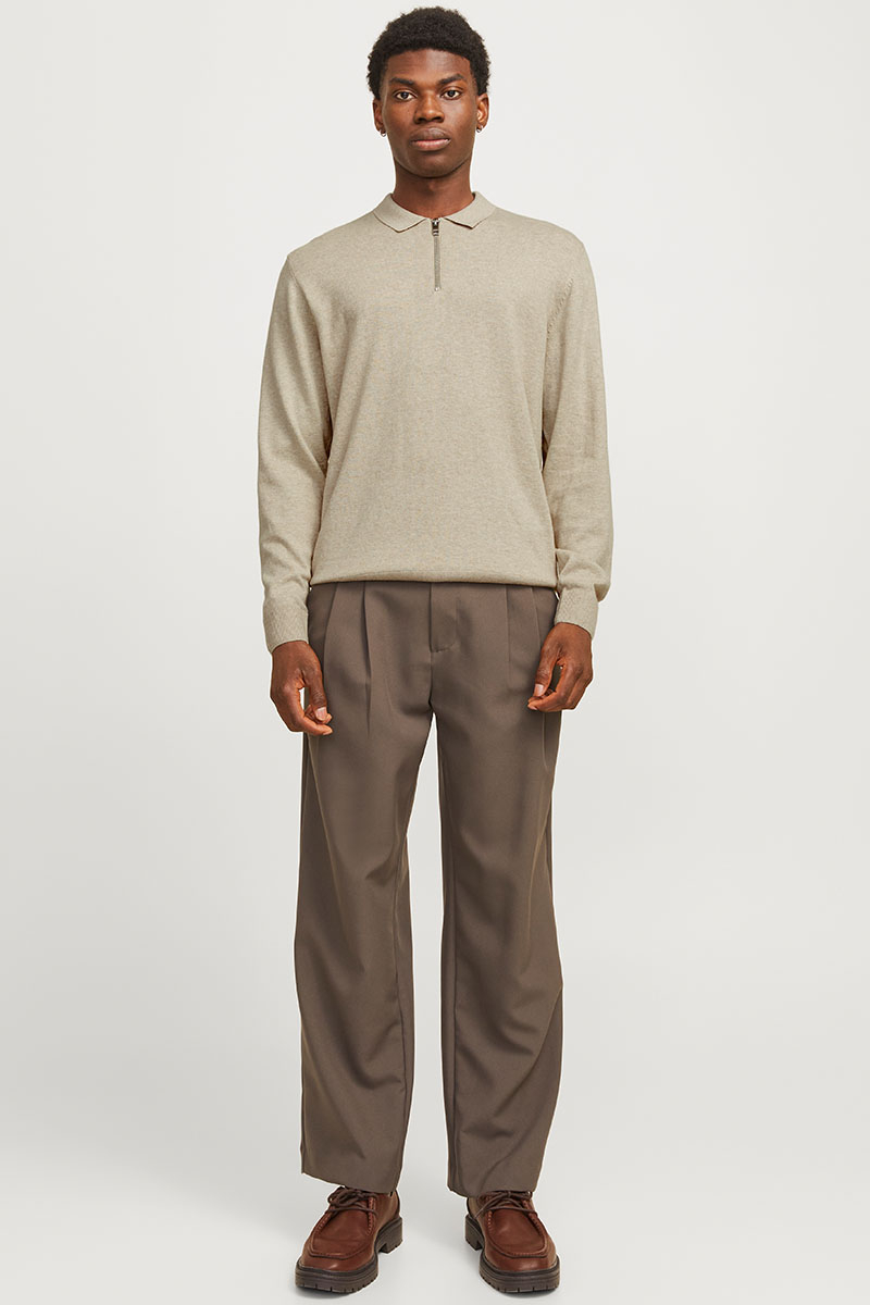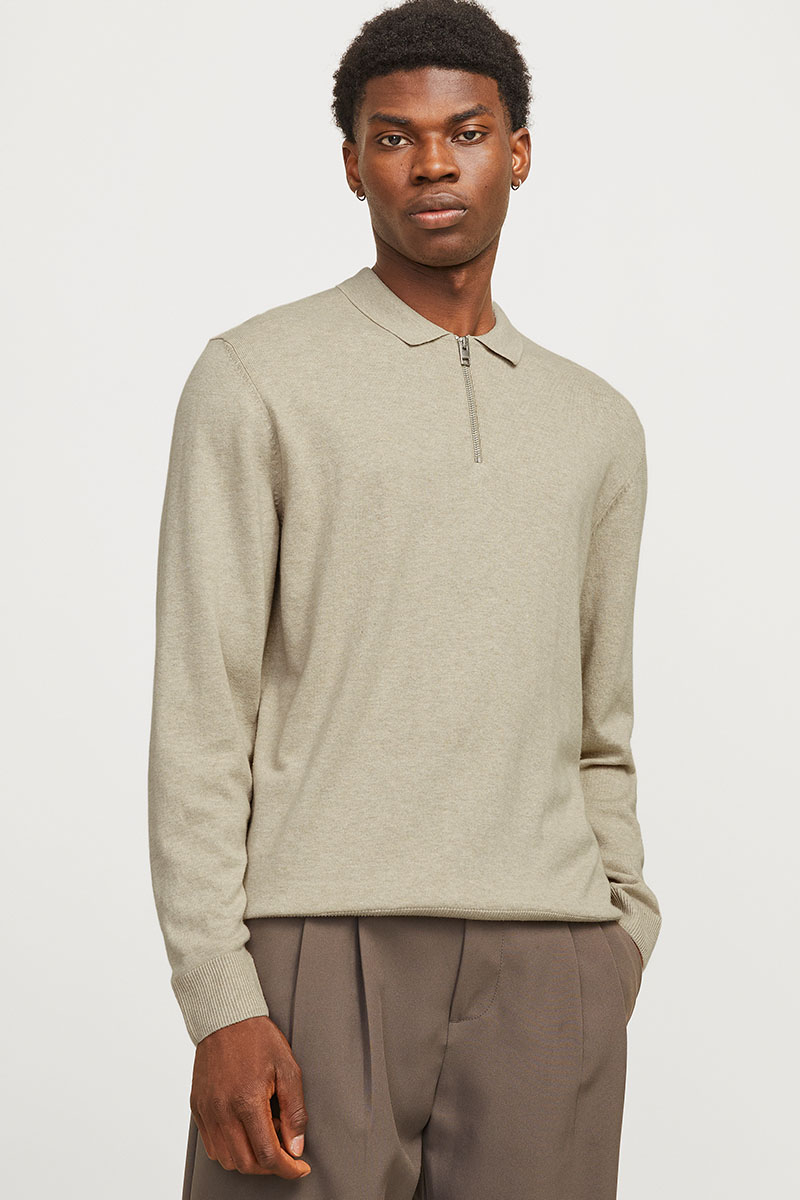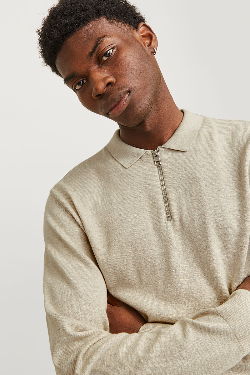 Jack & Jones Emil Knit Polo Half Zip LS Oatmeal