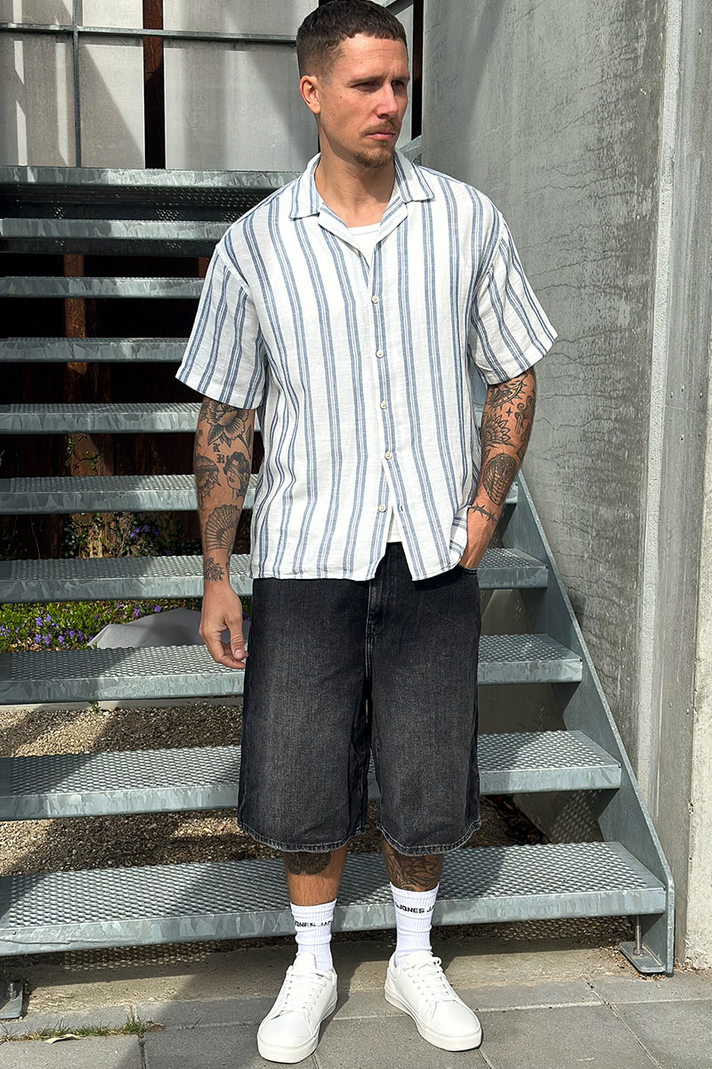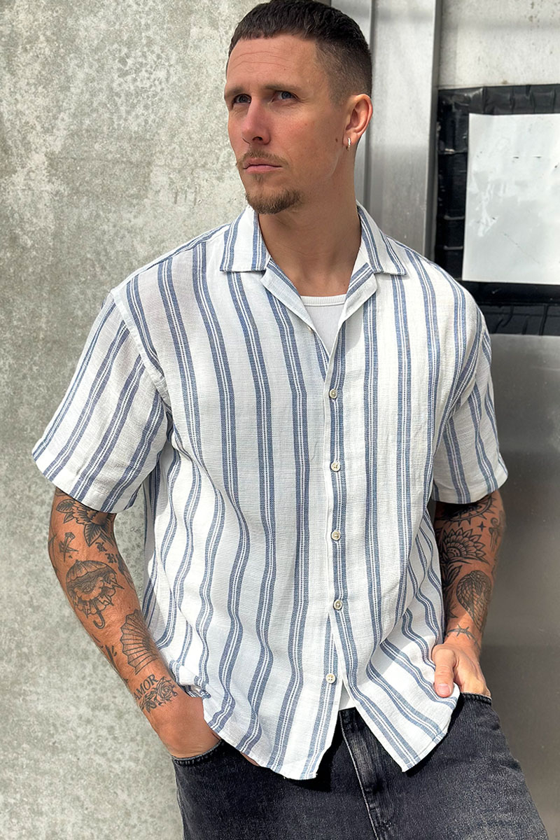 Tilbage til oversigten 2trendy > Tøj > Skjorter > Jack & Jones Enzo Stripe Resort Shirt SS White Leveringstid: 1-2 dage