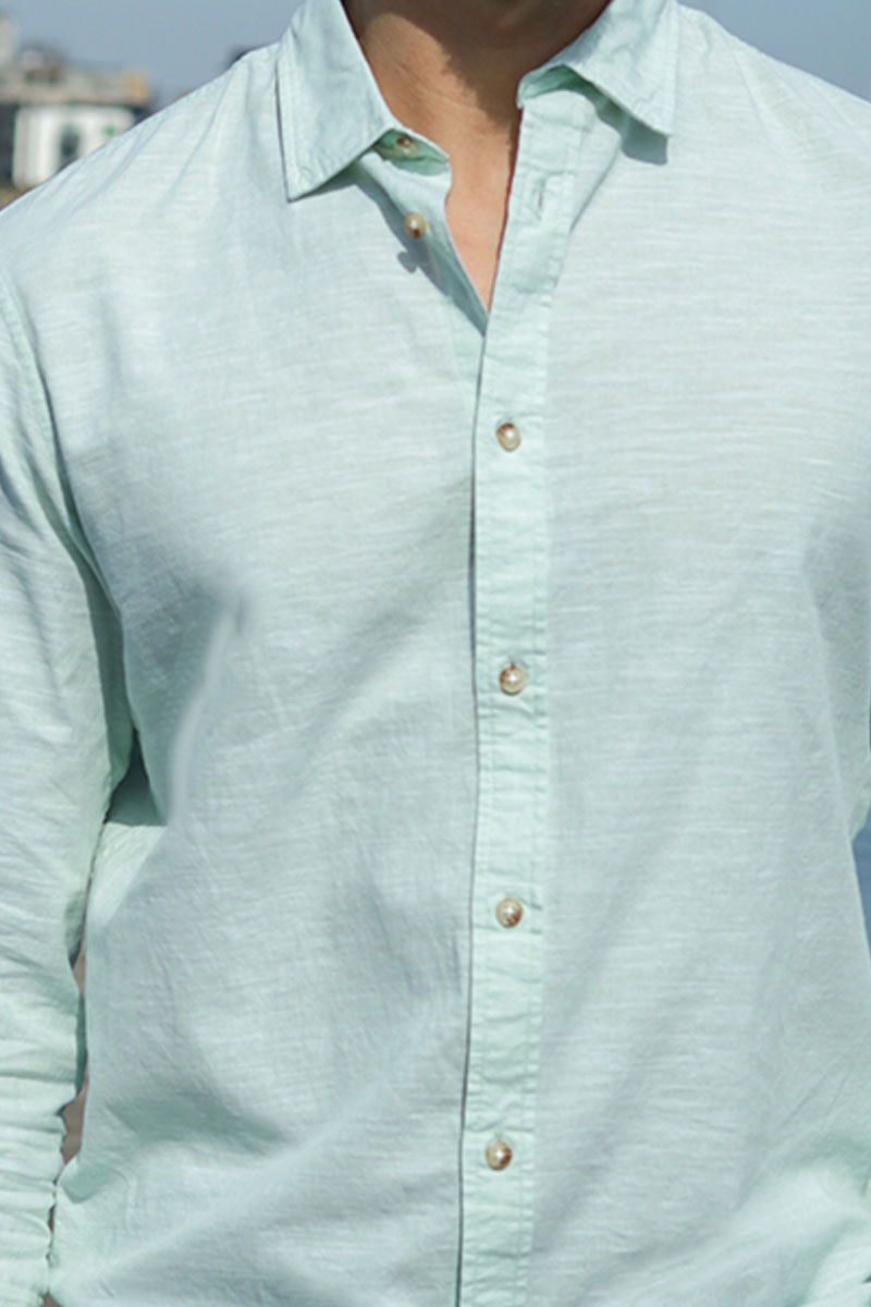 - Langærmet hørskjorte med klassisk krave.