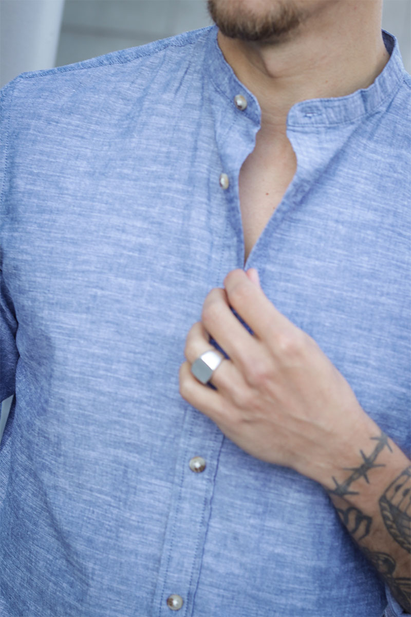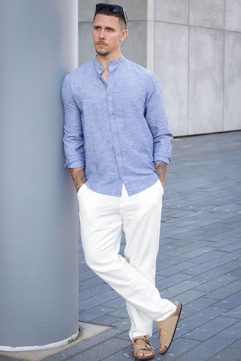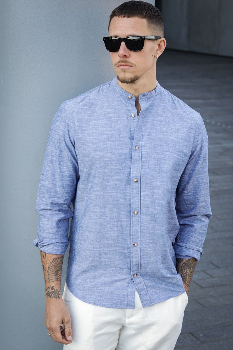 Jack & Jones Summer Band Shirt LS Faded Denim