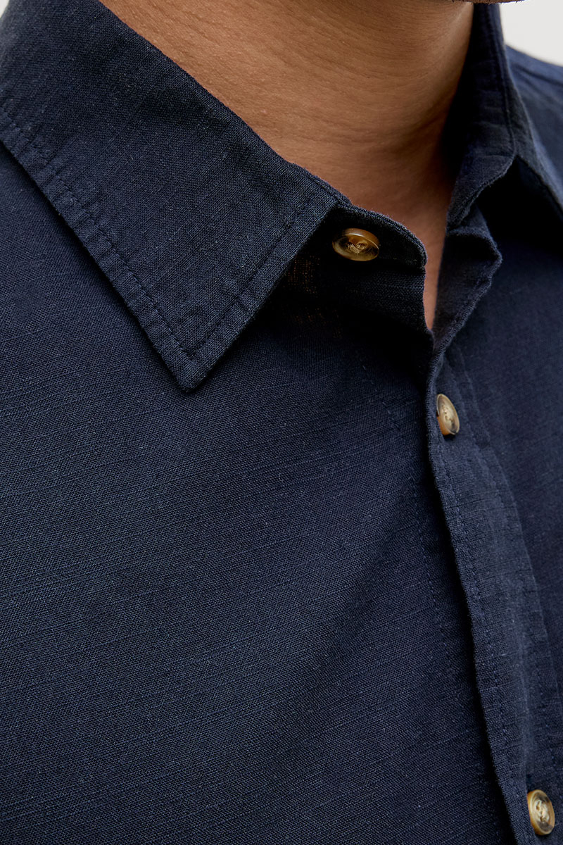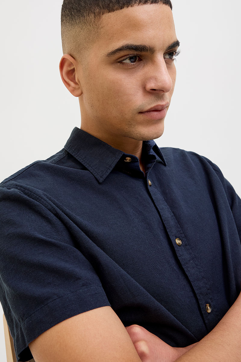 • Kortærmet hørskjorte med klassisk krave.