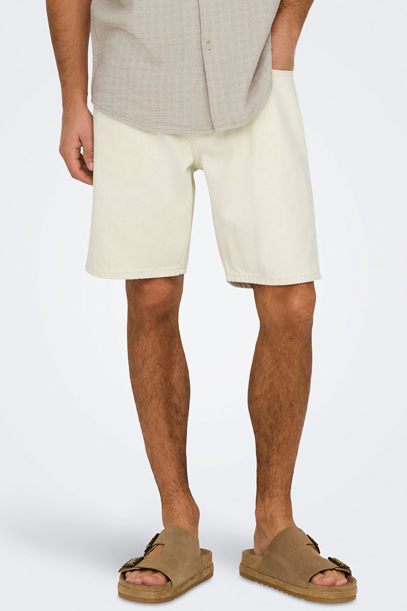 Only & Sons Edge Straight Fit Denim Shorts Ecru