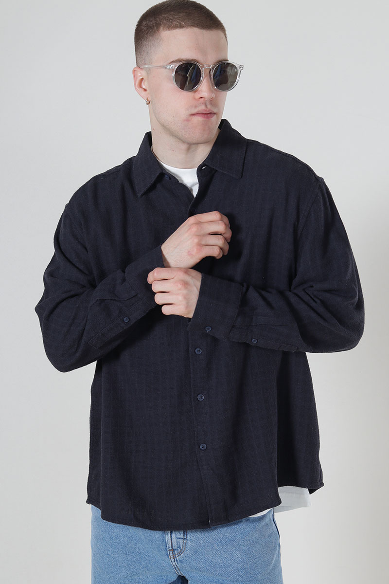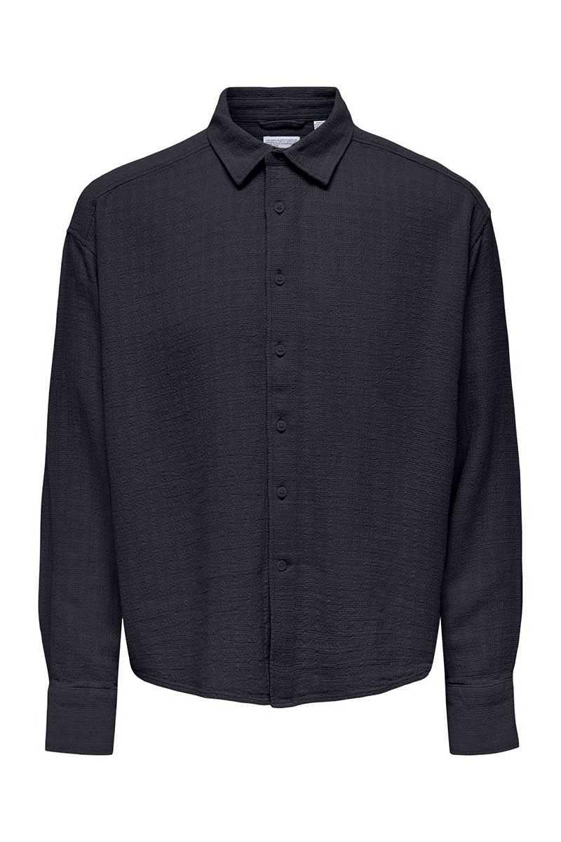 Only & Sons Latham LS Linen Structure Shirt Dark Navy