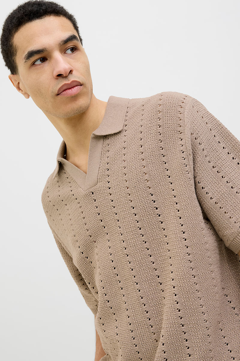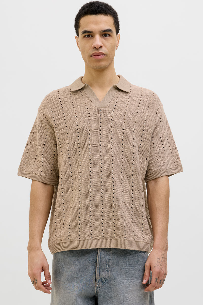 Jack & Jones Aros Knit Easter SS Crochet Polo Safari