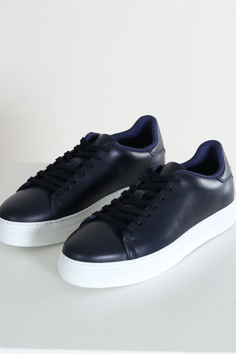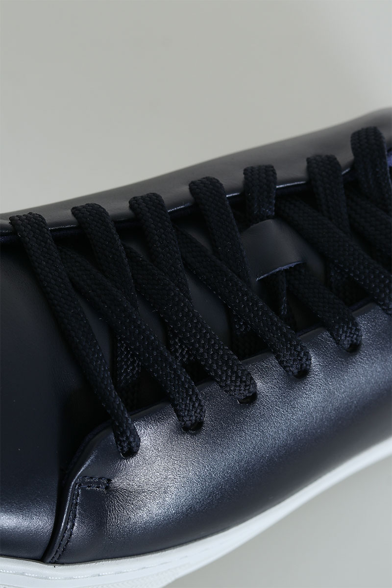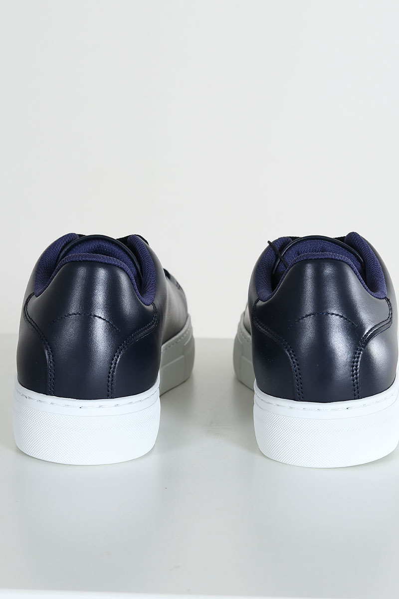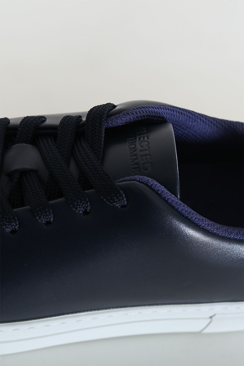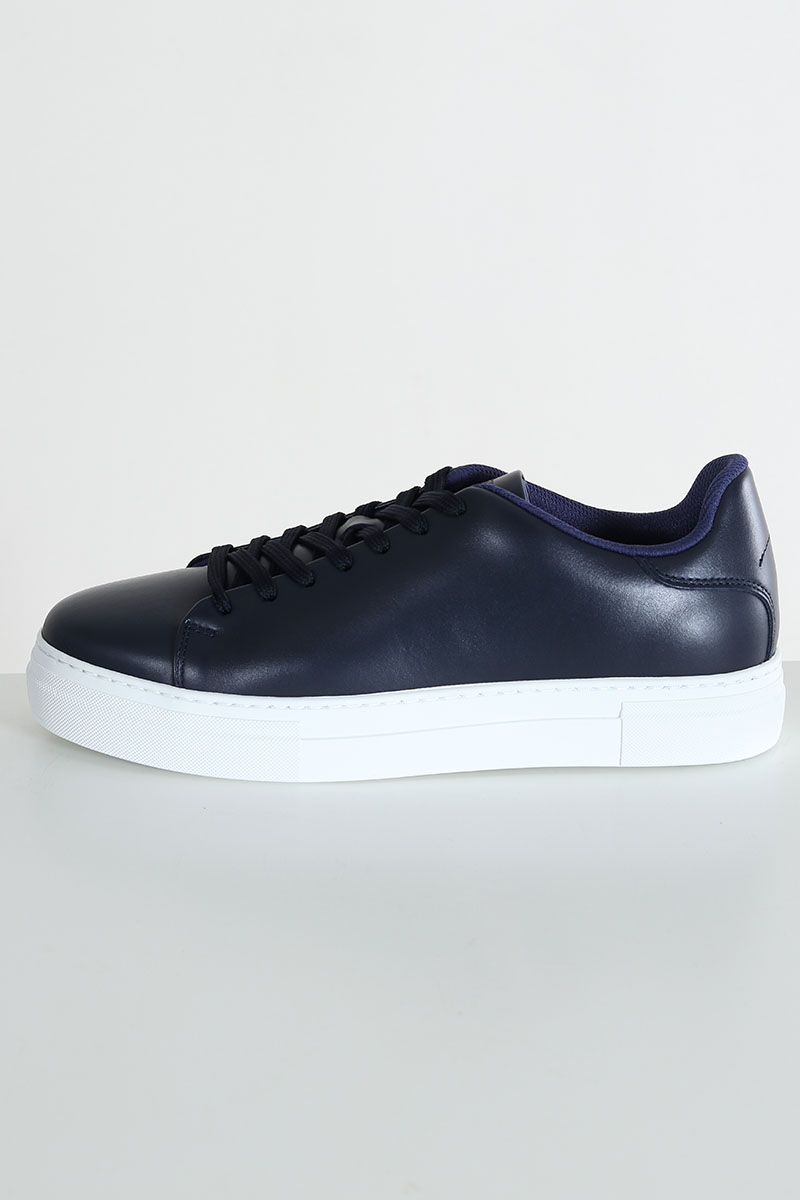 - Mørkeblå lædersko med hvid tyk gummisål