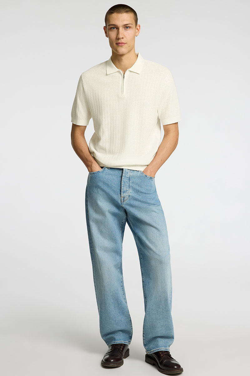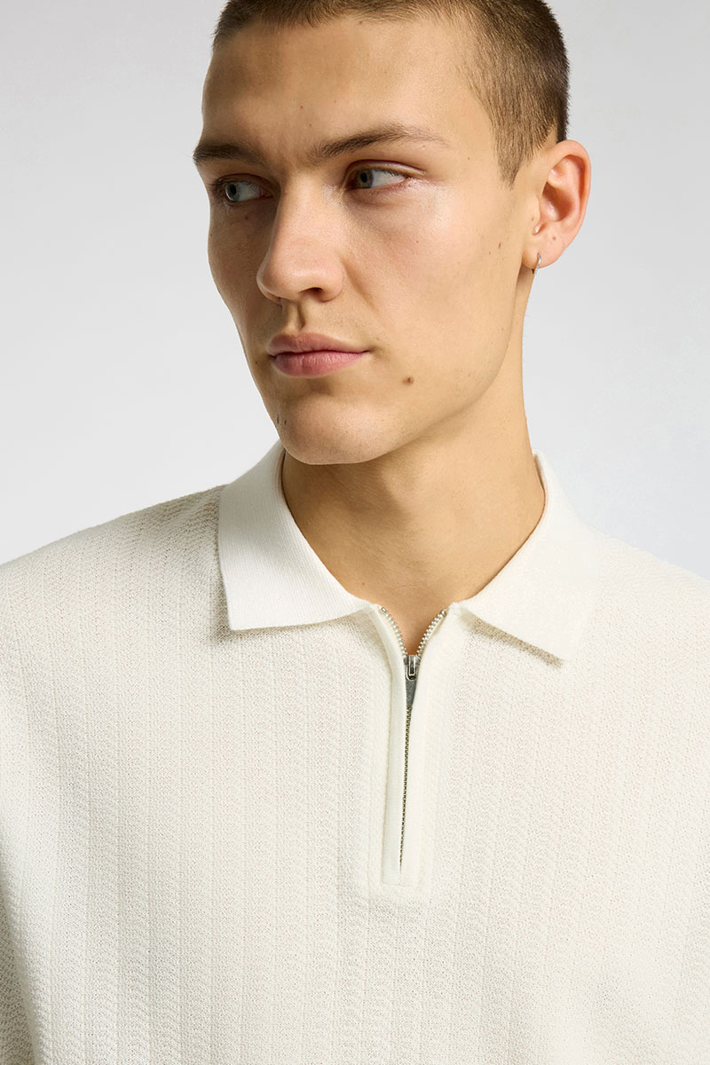 - Har lynlås og polokrave samt ribkant ved ærmerne og i bunden