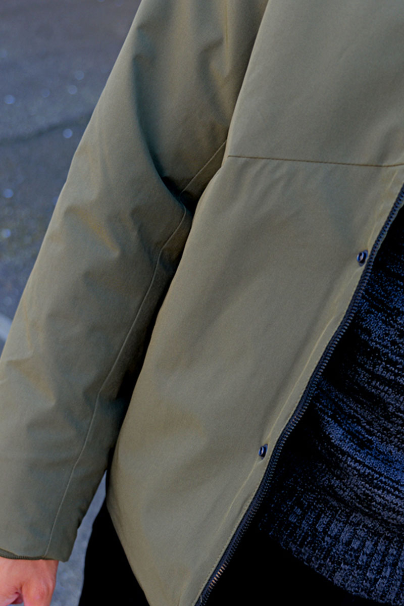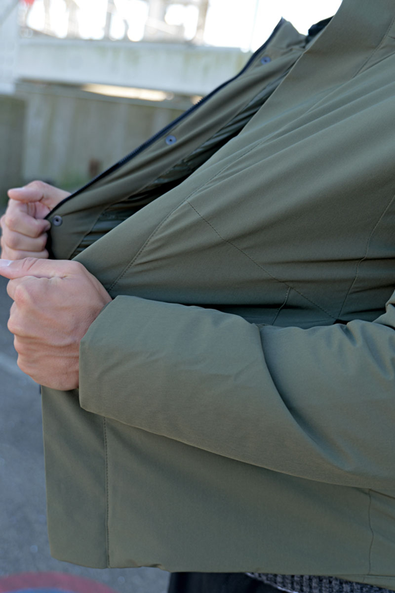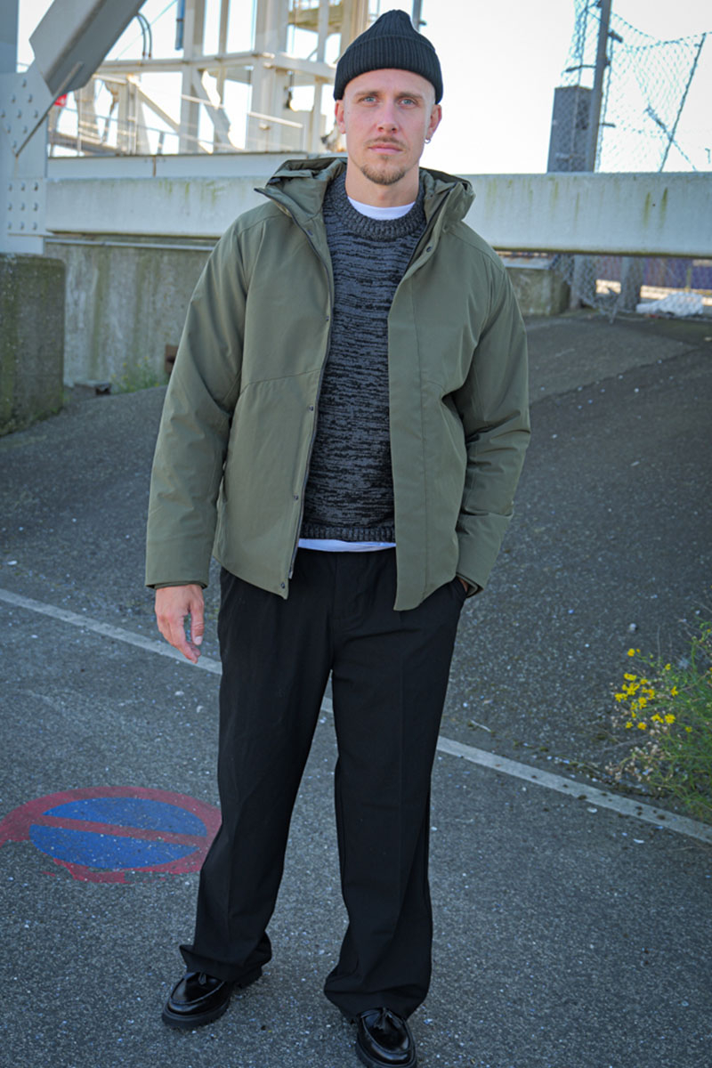 Modellen er 180 cm høj, vejer 74 kg, og bruger produktet i størrelse Large