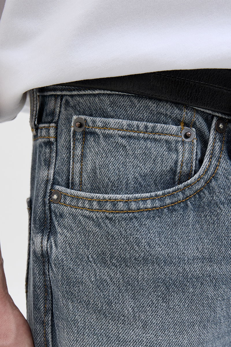 Modellen er 182 cm høj, vejer 80 kg, og bruger produktet i størrelse 33/34