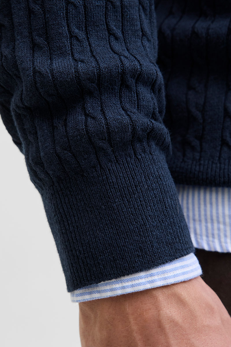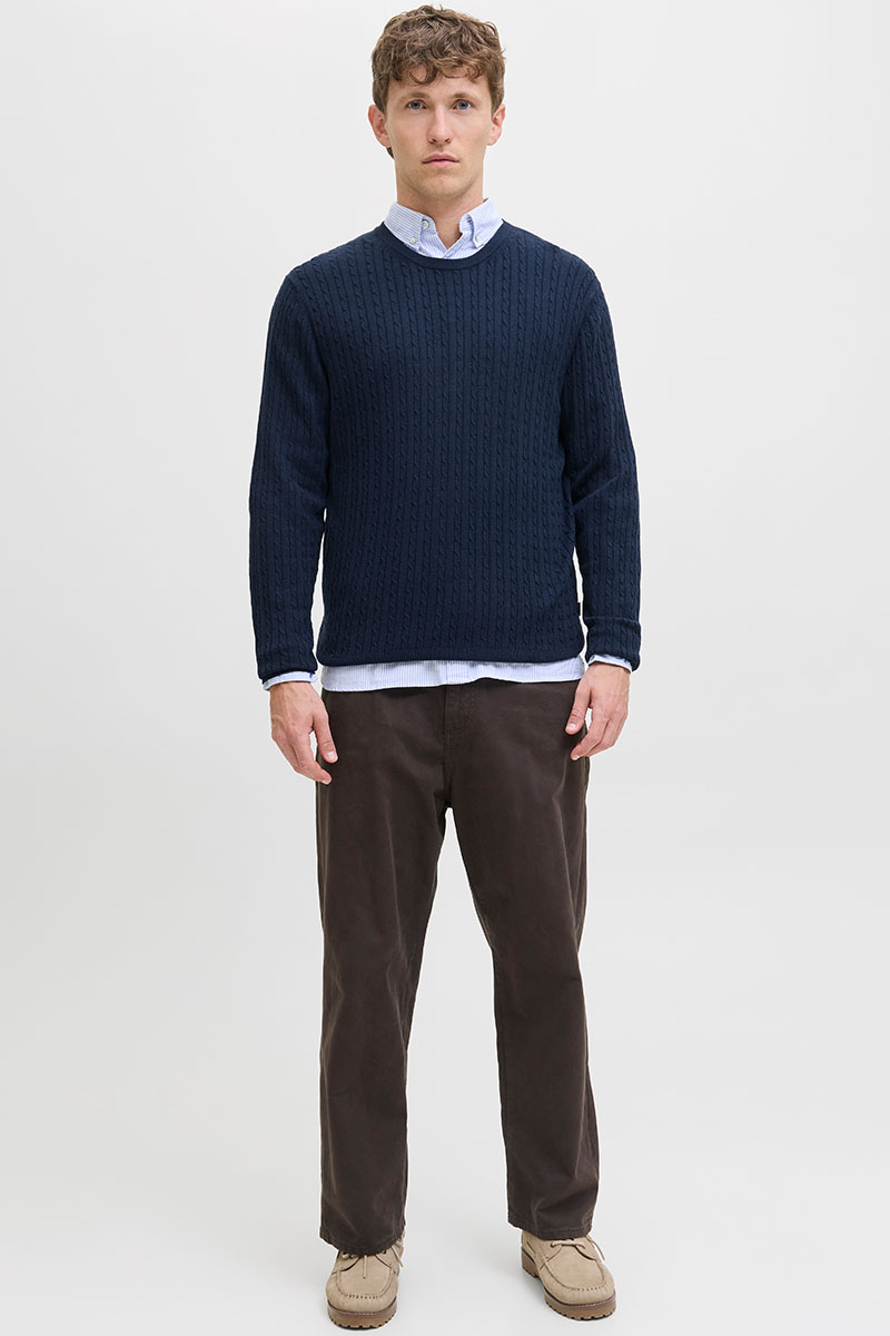 Jack & Jones Emil Knit Cable Crew Neck Navy Blazer