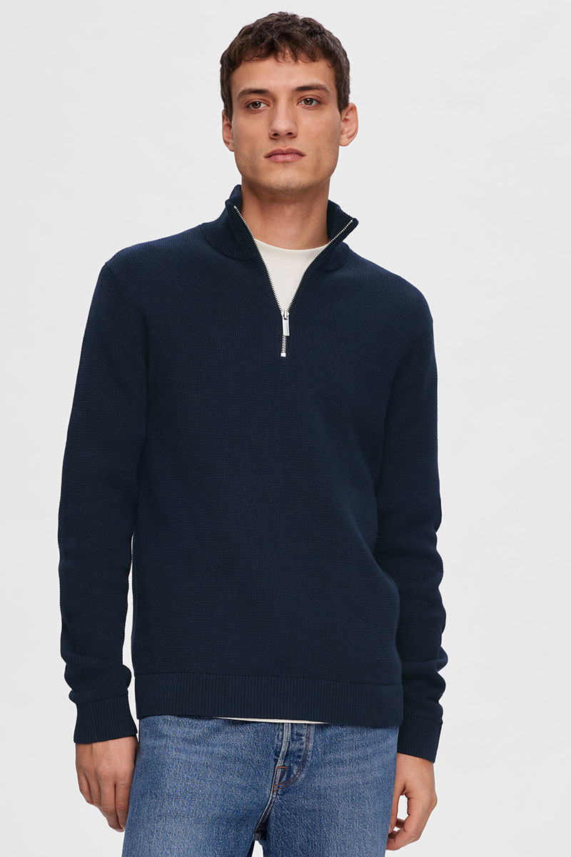 Selected Dane LS Structure Knit Half Zip Sky Captain