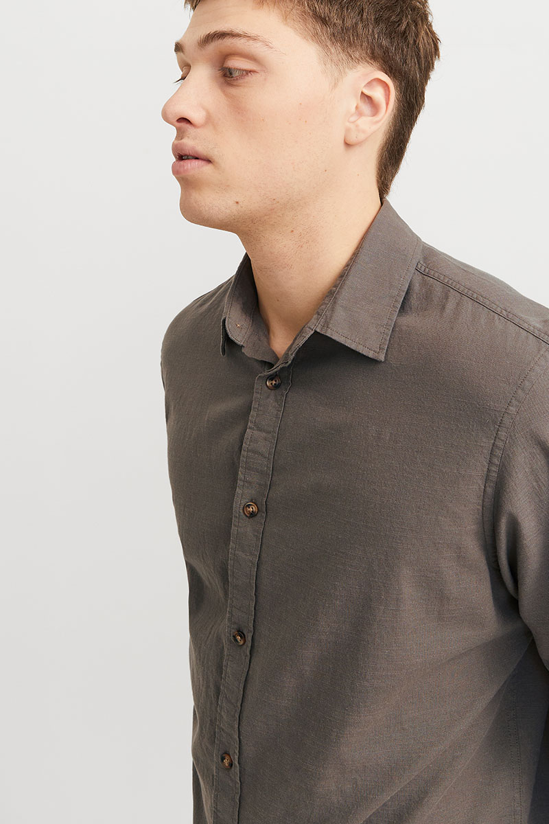 • Langærmet hørskjorte med klassisk krave