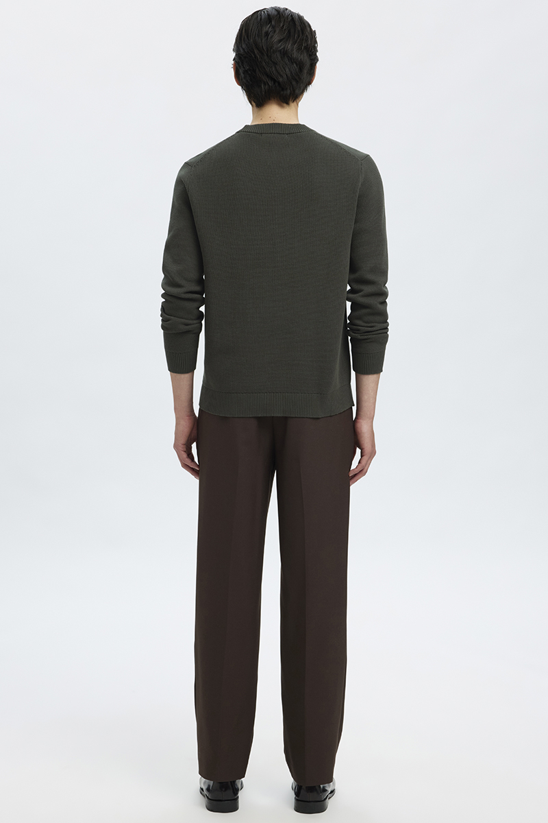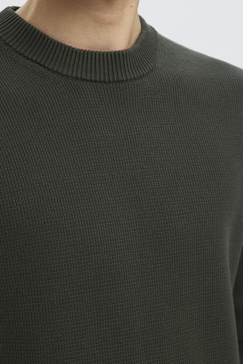 • Mørkegrøn langærmet strikketrøje i regular fit