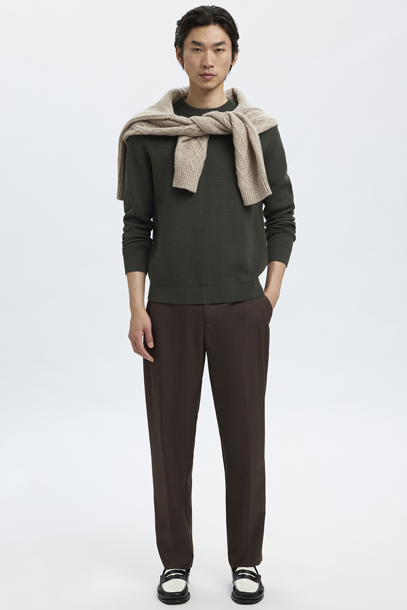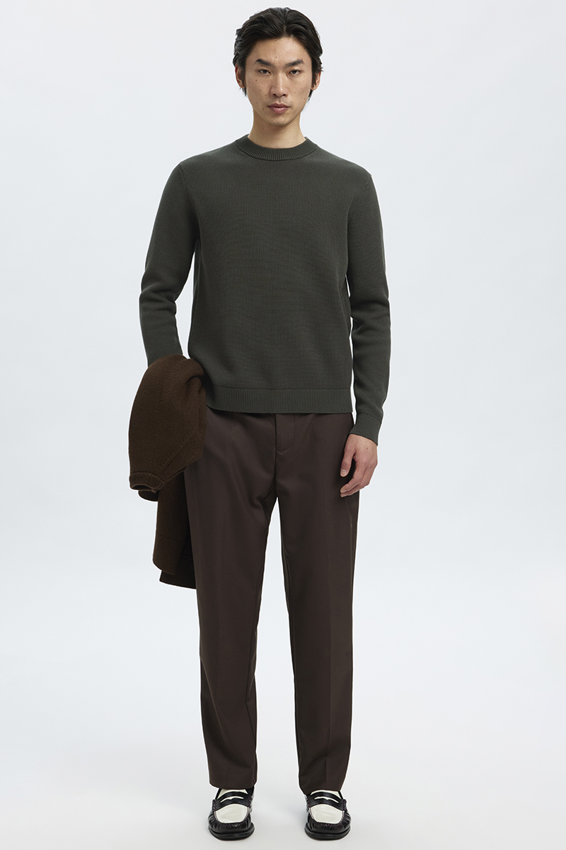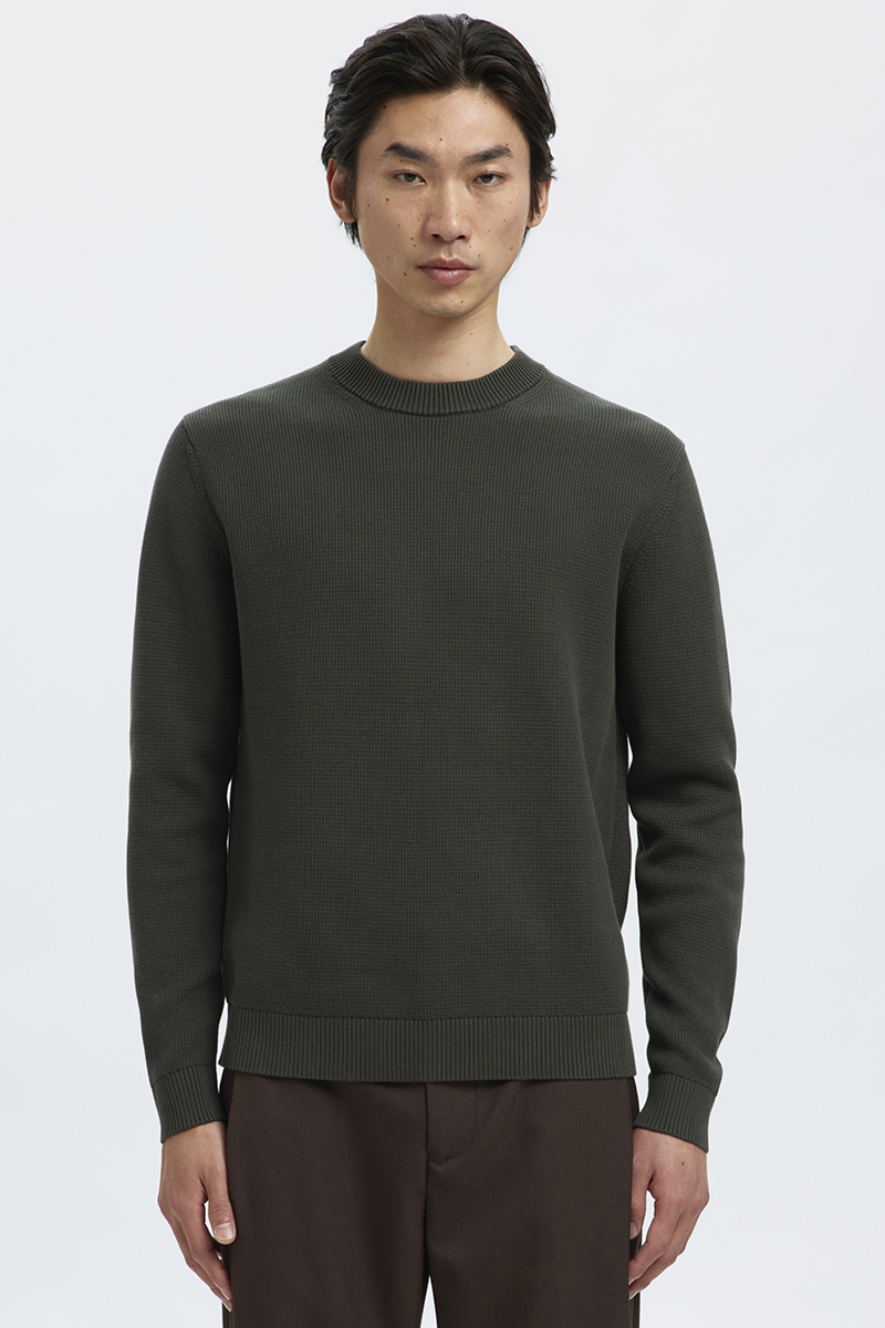 Selected Dane LS Structure Knit Crew Neck Deep Forest