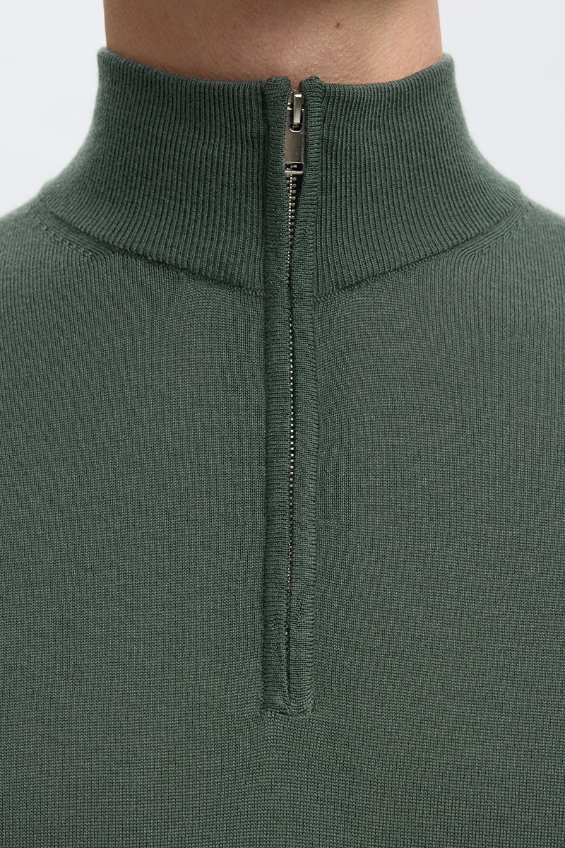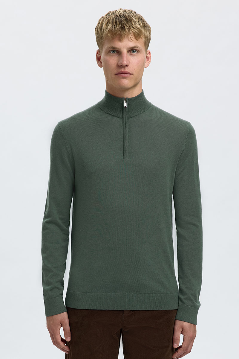 Selected Tray LS Merino Knit Half Zip Deep Forest