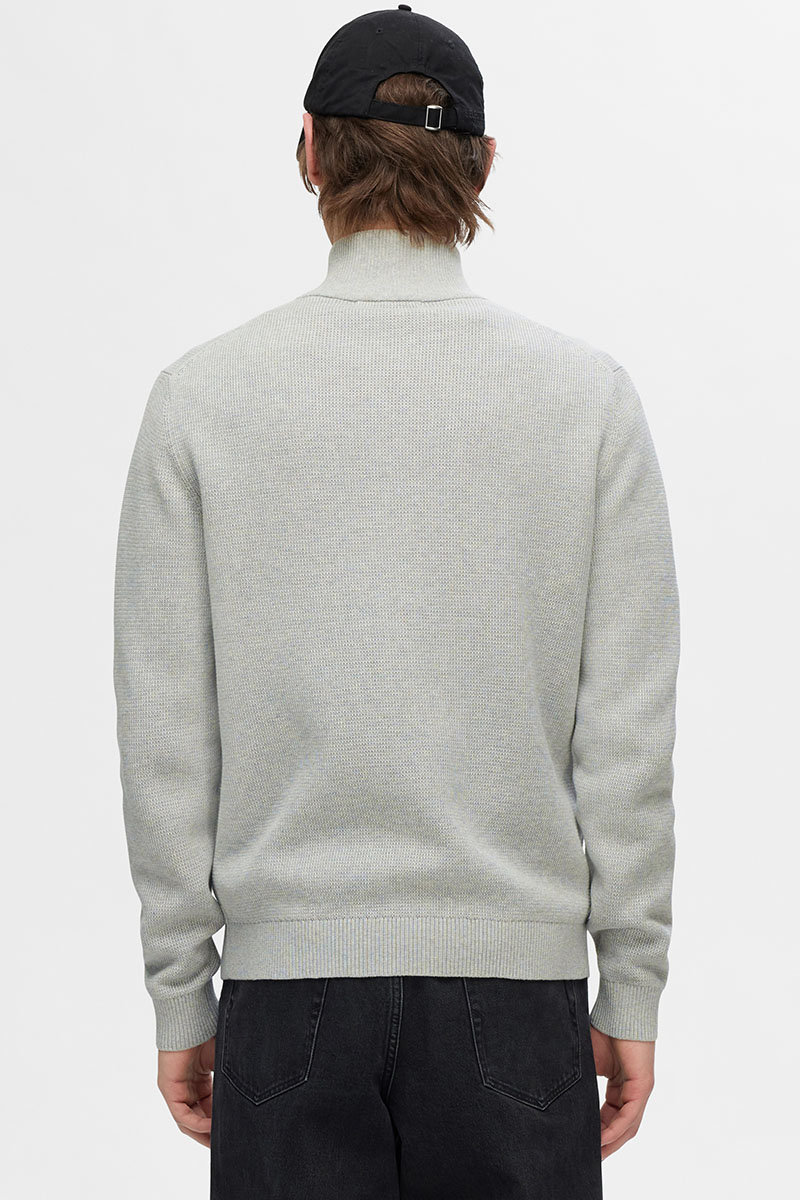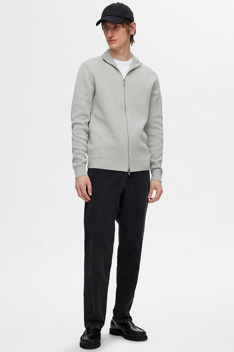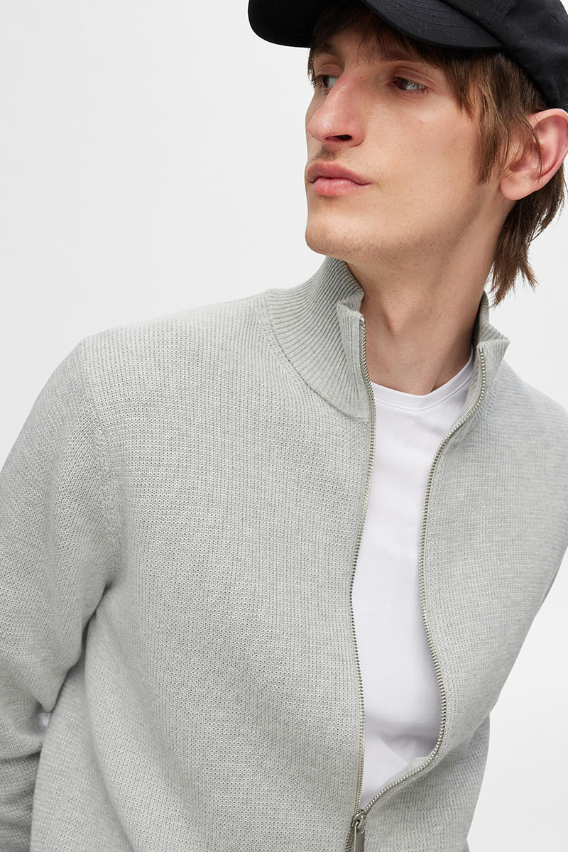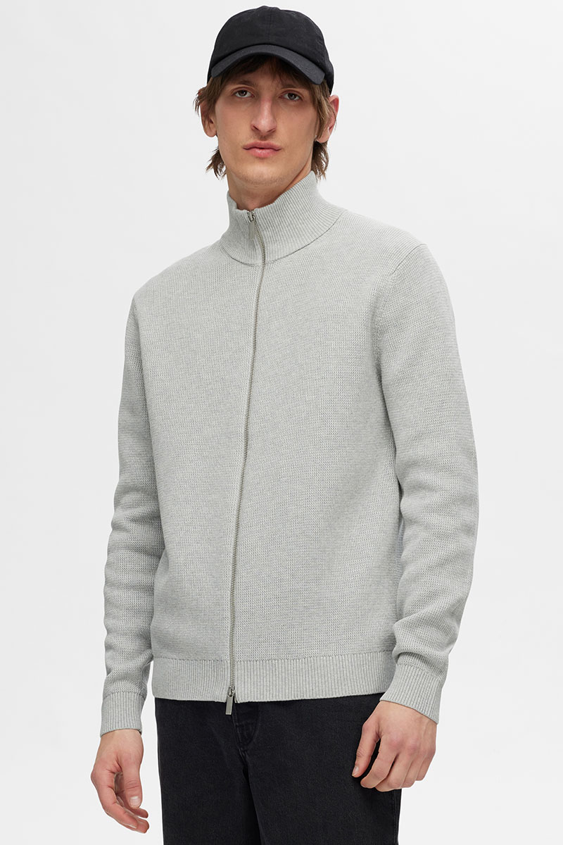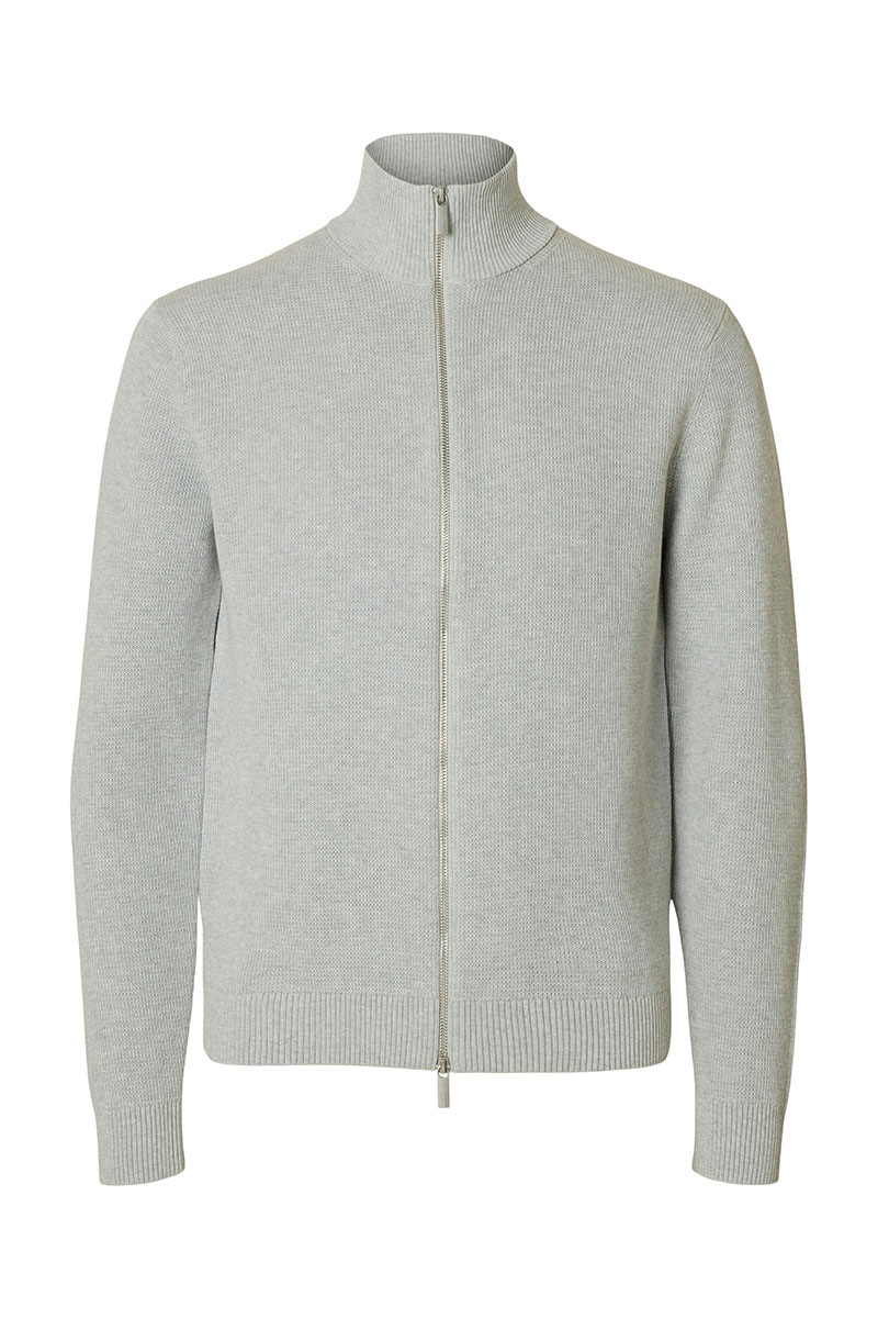 Selected Dane Structure Knit Full Zip Light Grey Melange