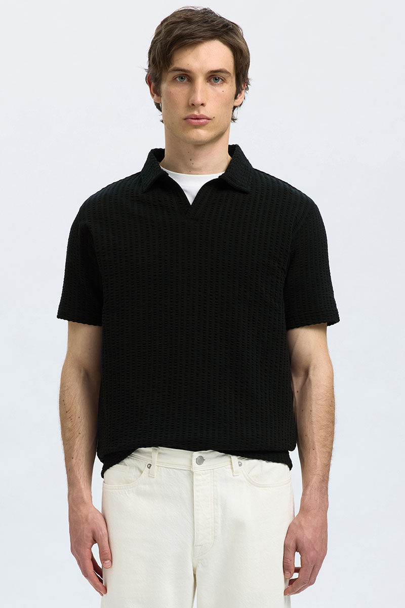 Selected Blake Split Neck Regular Fit SS Polo Black