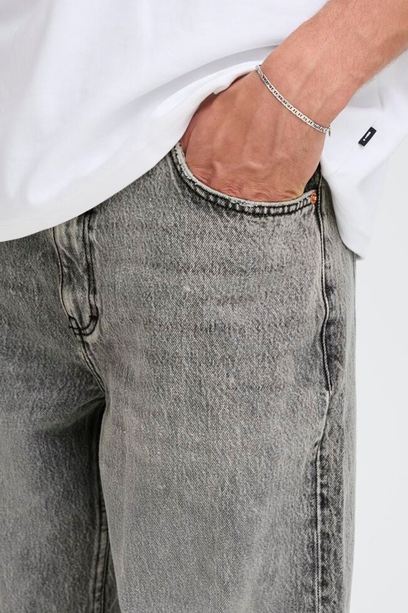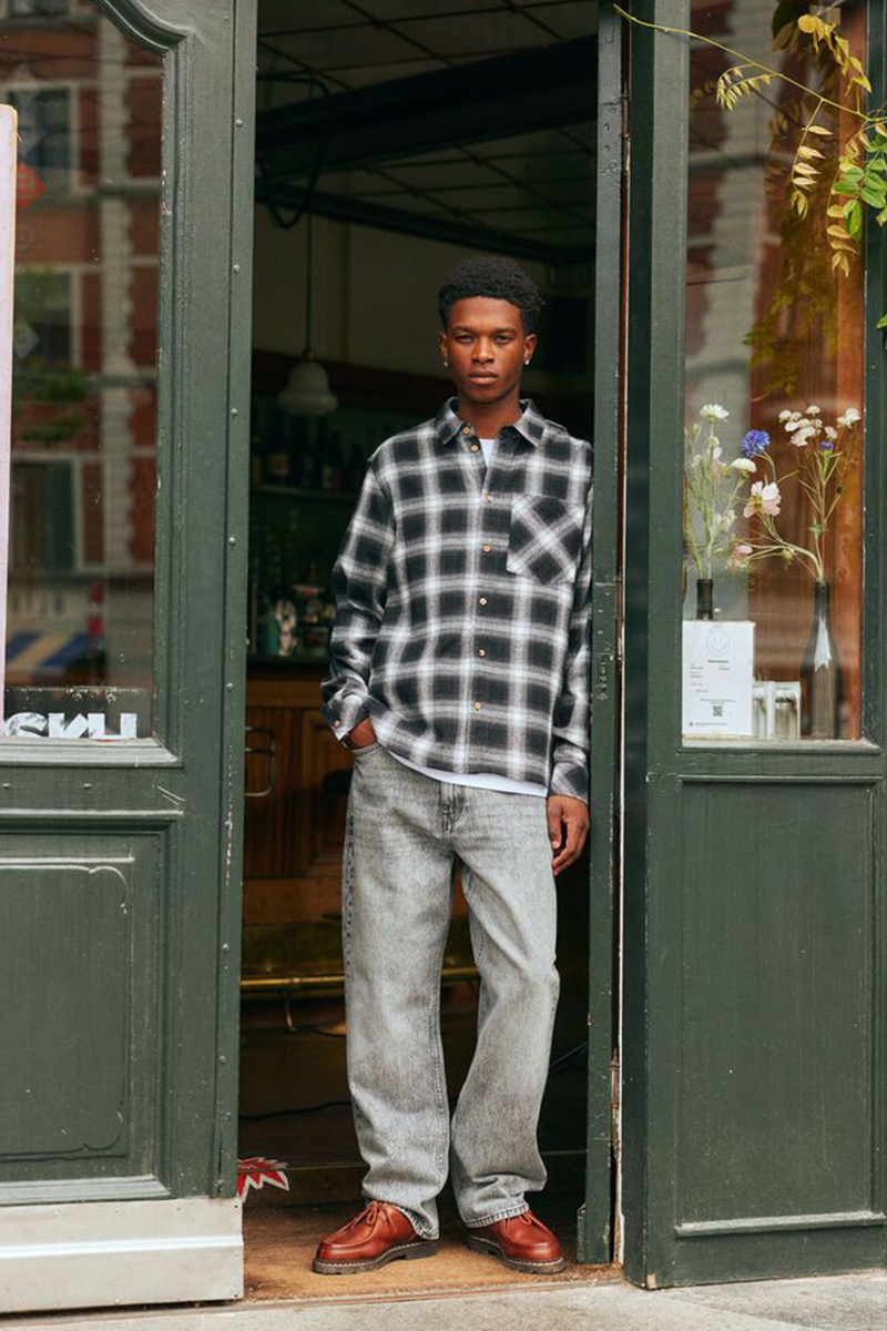Modellen er 189 cm høj, vejer 85 kg, og bruger produktet i størrelse 32/34