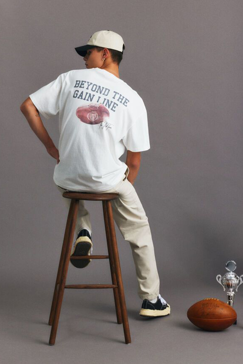 • T-shirten har et stort print på rygegen samt et mindre print og brodering på brystet