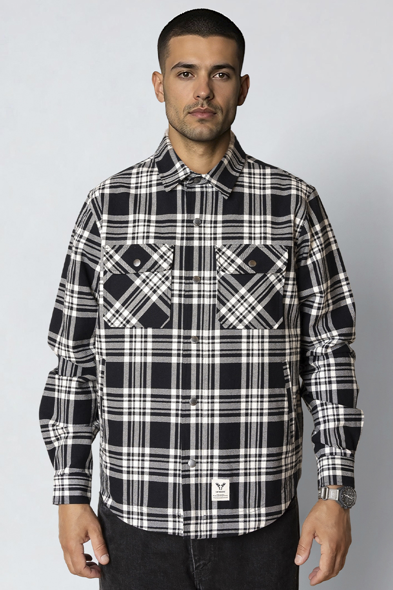 Fat Moose Pablo Check Overshirt Black/Ecru