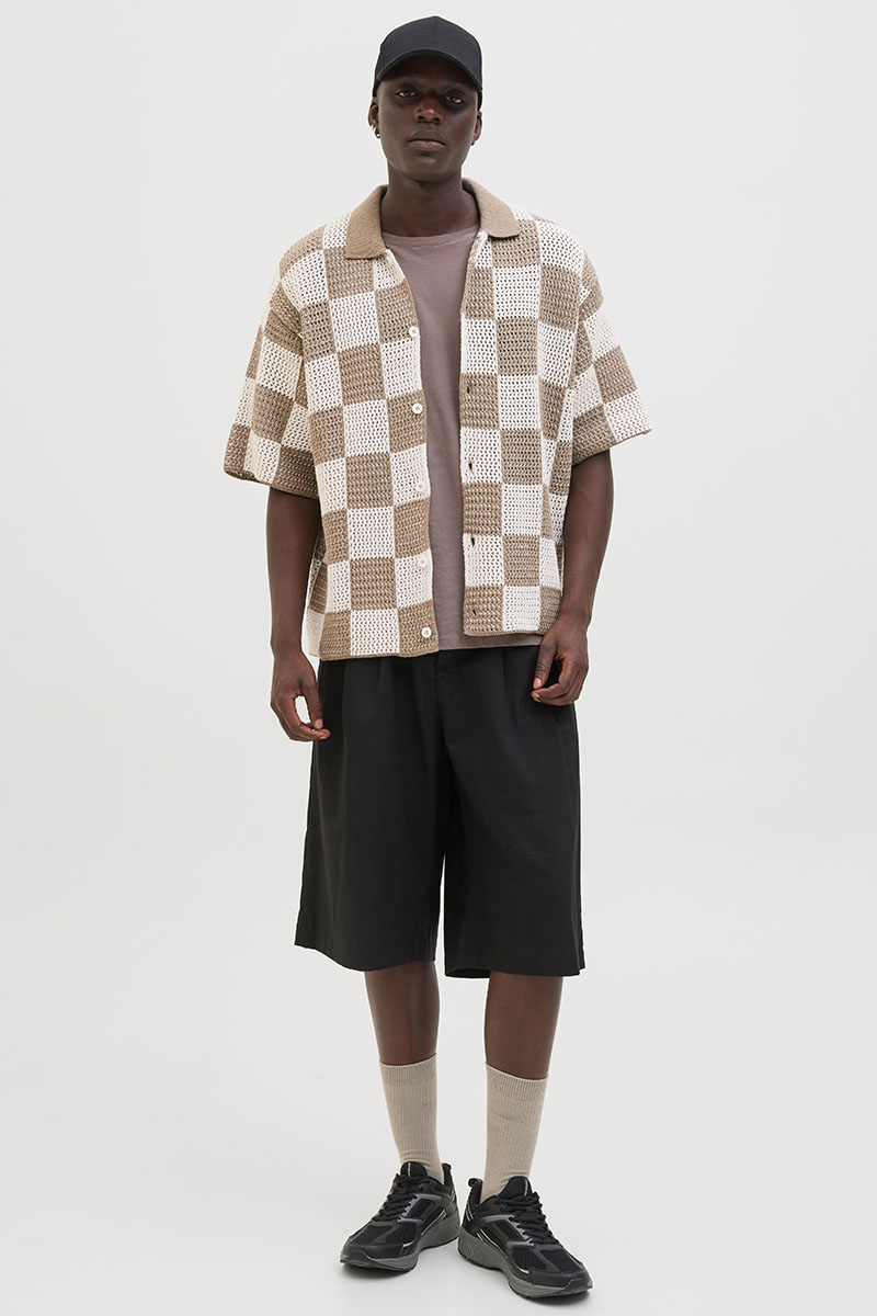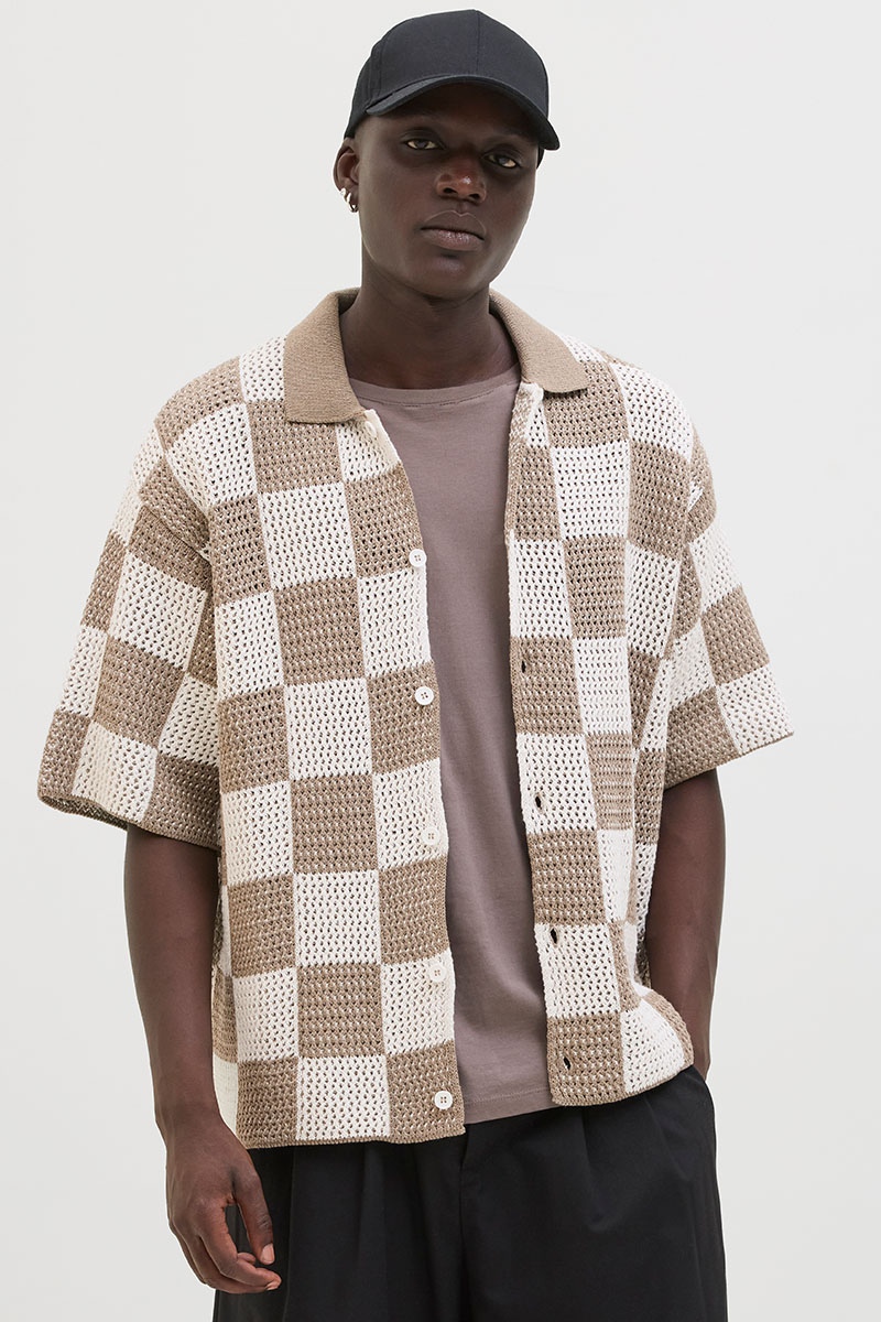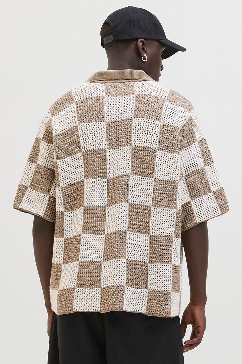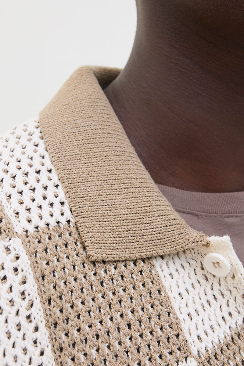 Jack & Jones Athletico Loose Fit Crochet Polo Shirt SS Desert Taupe